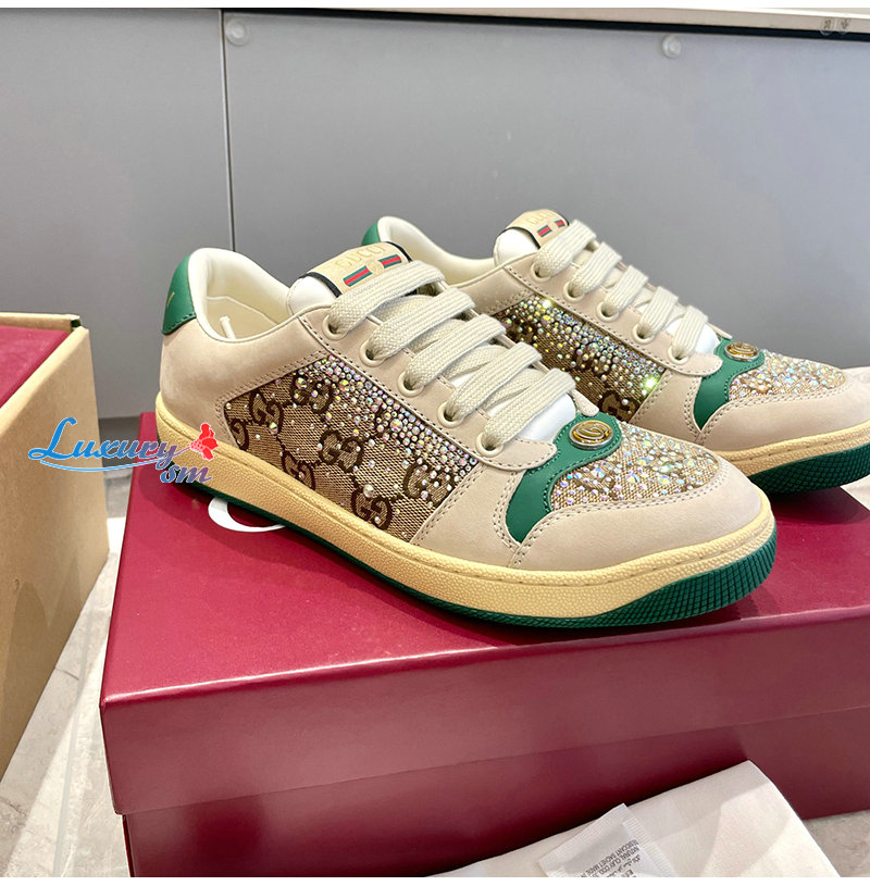 GUCCI-812041 9541 구찌 아이보리 크리스털 장식 스크리너 스니커즈 여성용