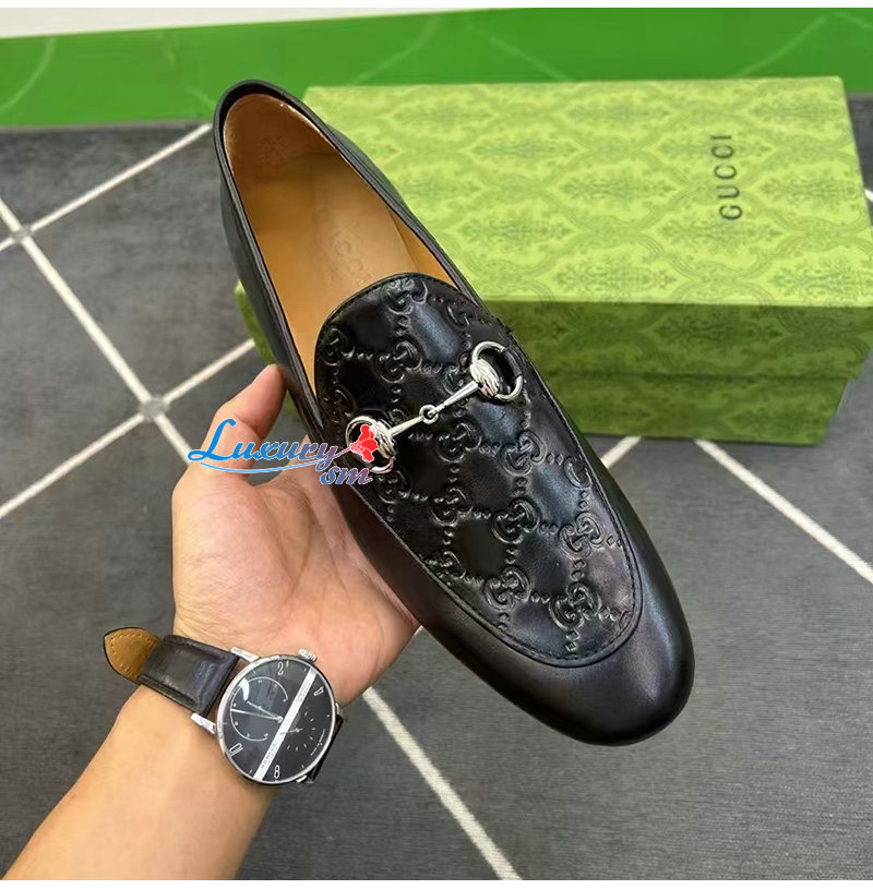 GUCCI-798997 1000 구찌 블랙 가죽 홀스빗 로퍼 남성용