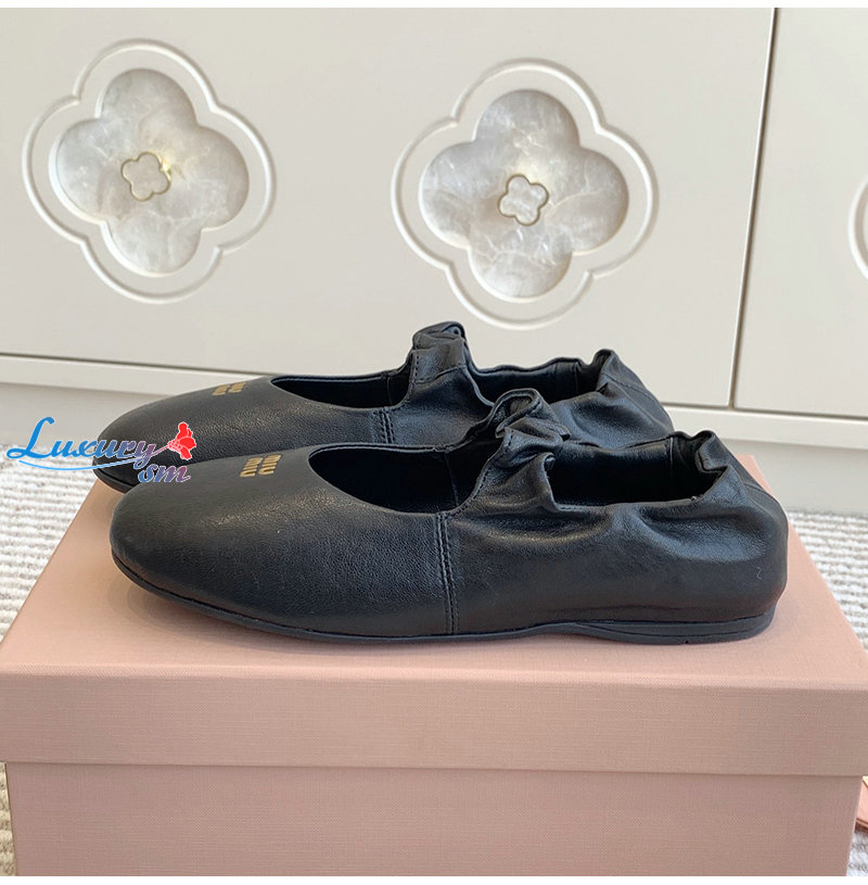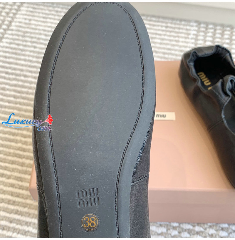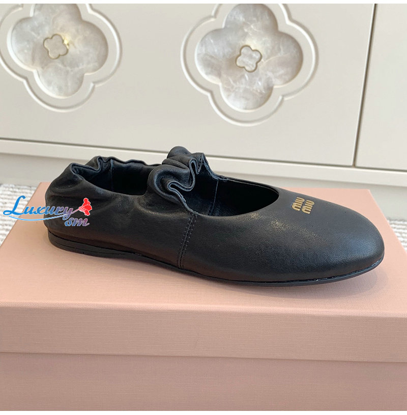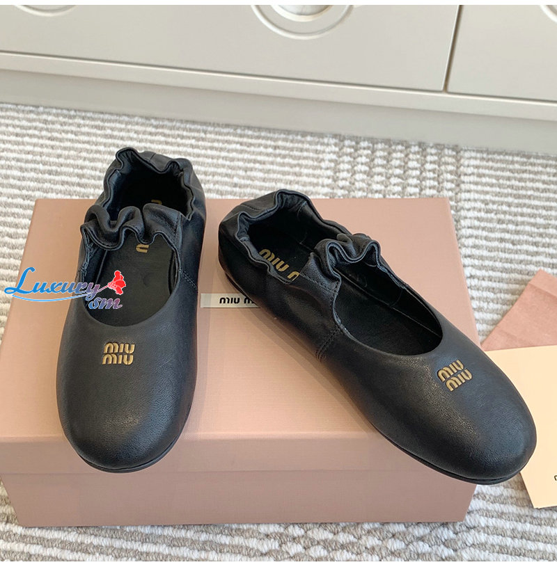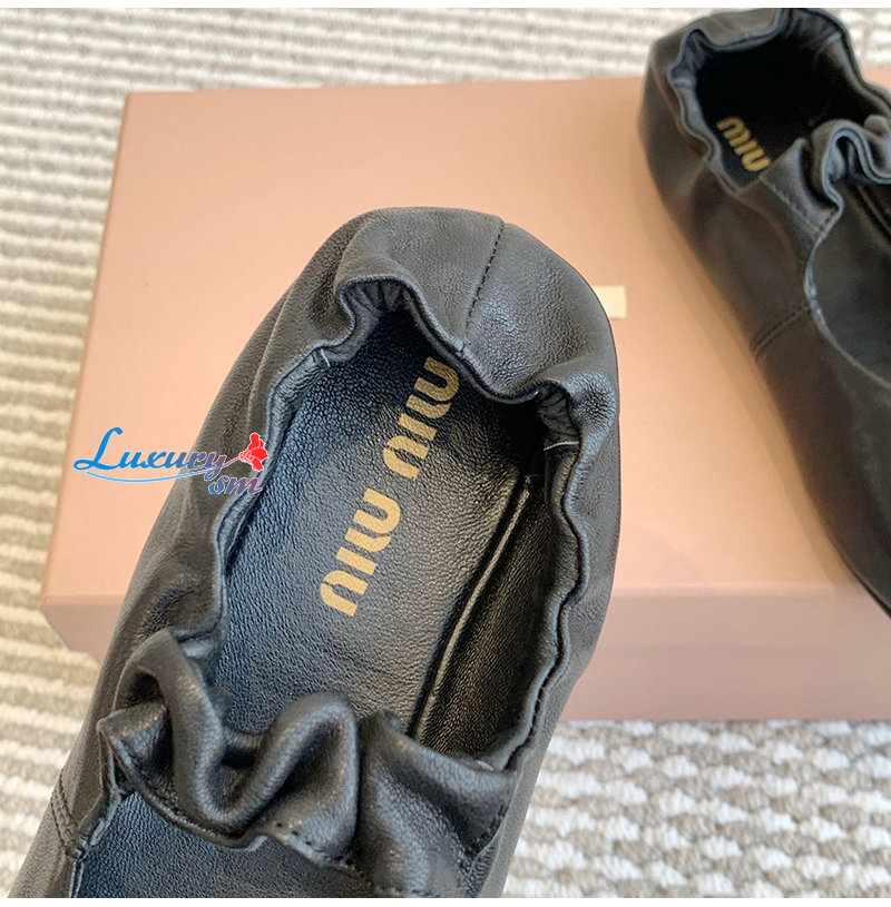 MIUMIU-5F340E 미우미우 블랙 루슈 나파 가죽 발레리나