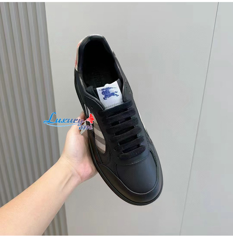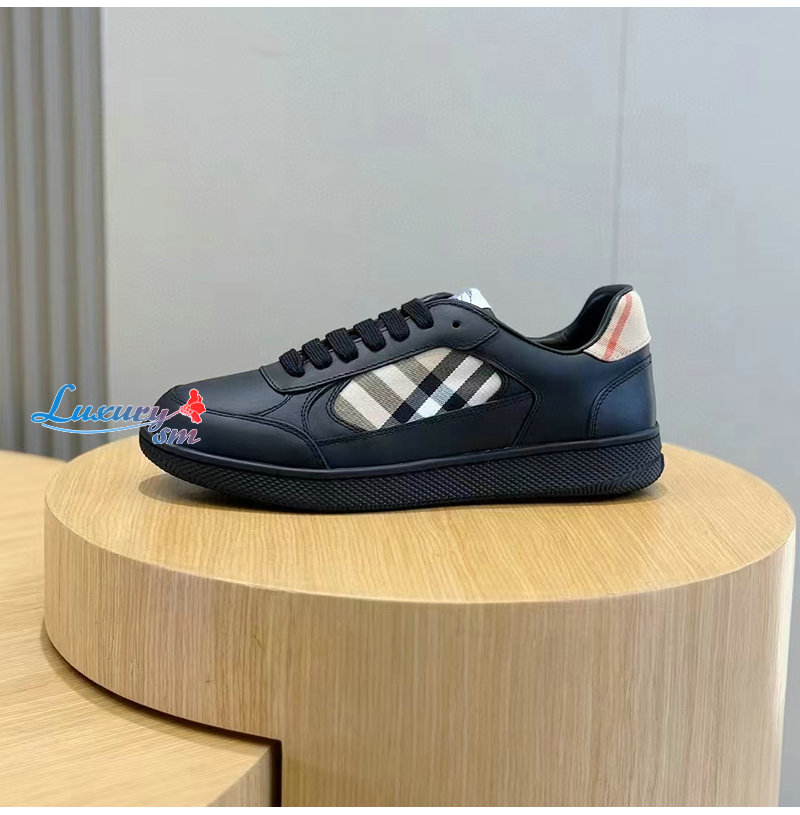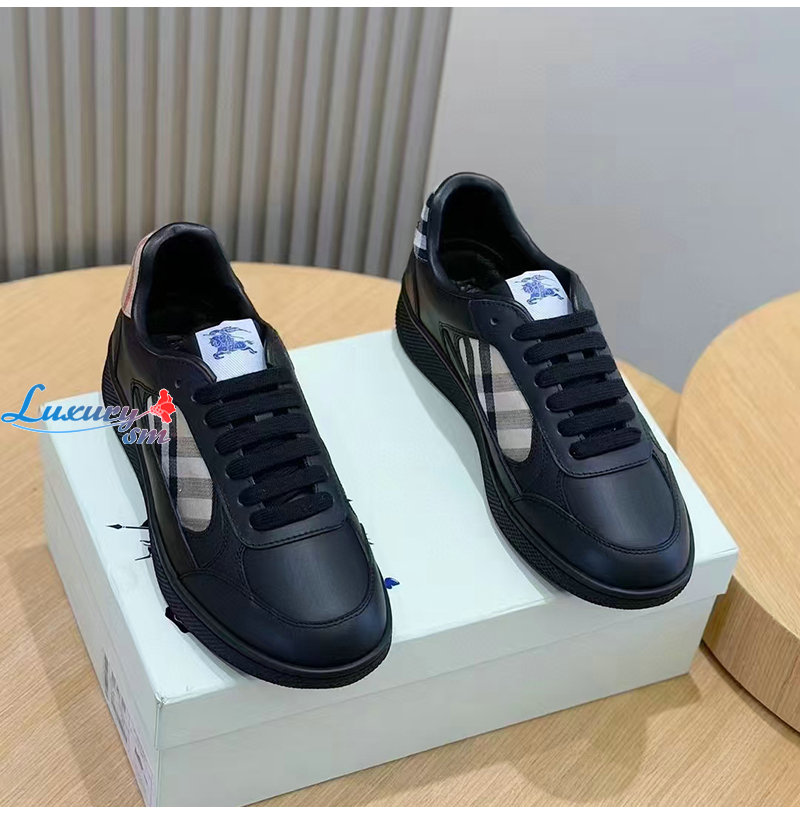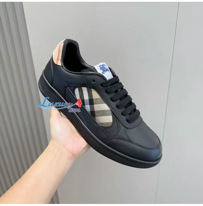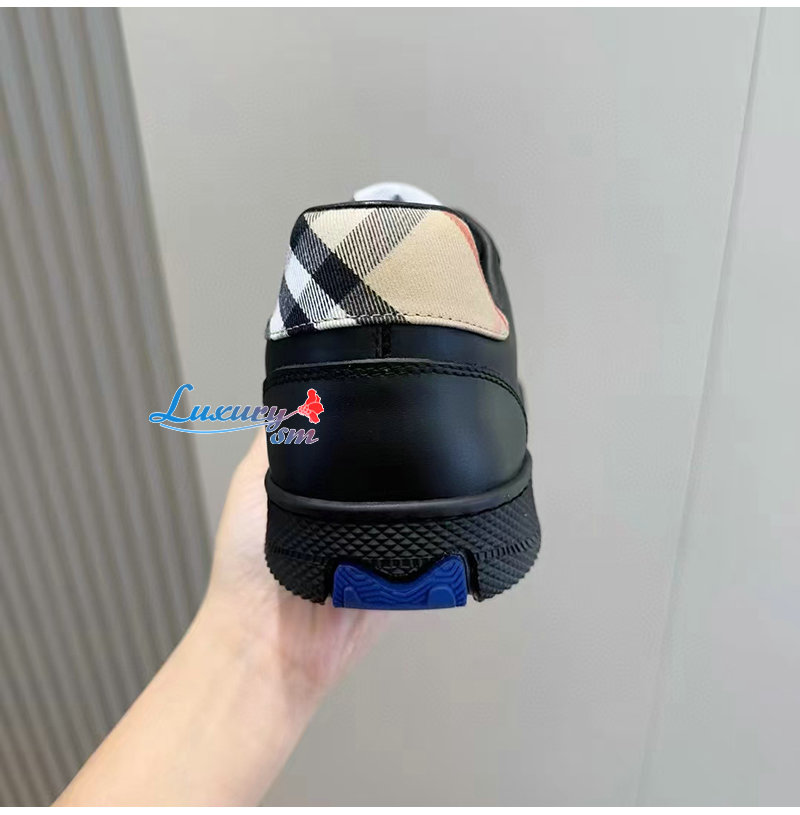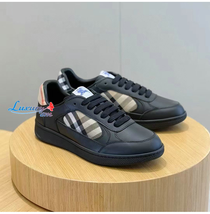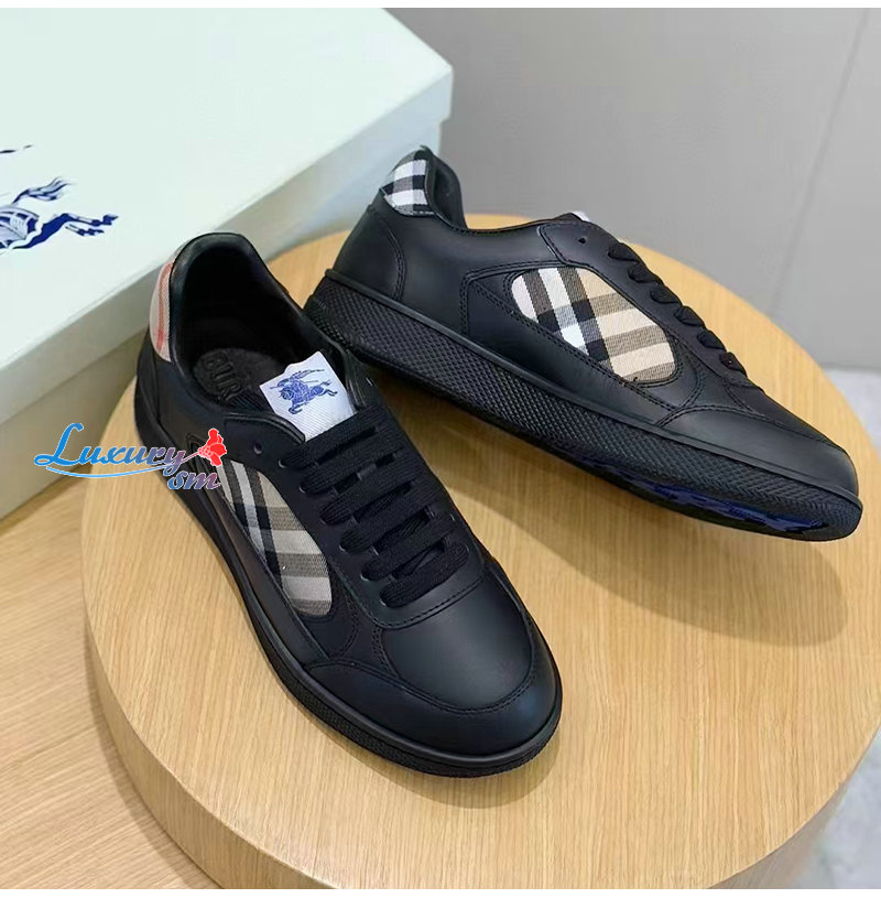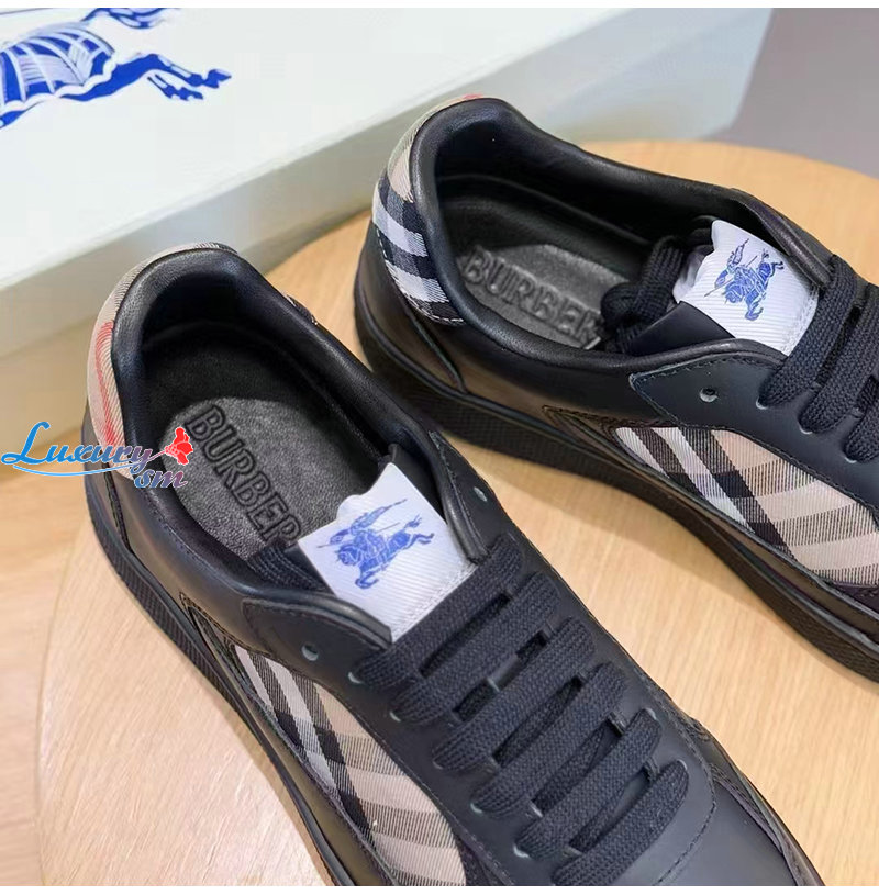 BURBERRY-81086501 버버리 블랙 레더 체크 테라스 스니커즈? 남성용