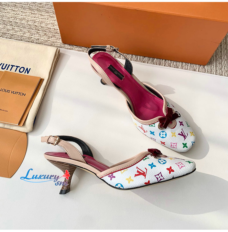 LOUIS VUITTON-04072 루이비통 화이트 모노그램 LV x TM 슬링백 펌프스