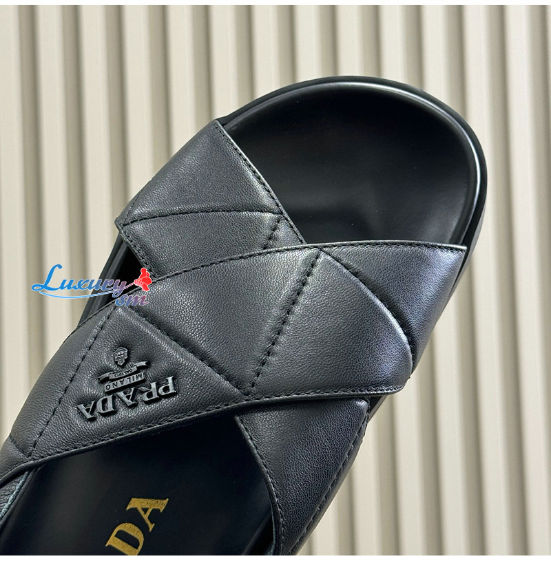 PRADA-1XZ777 프라다 블랙 나파 가죽 플랫폼 샌들 여성용