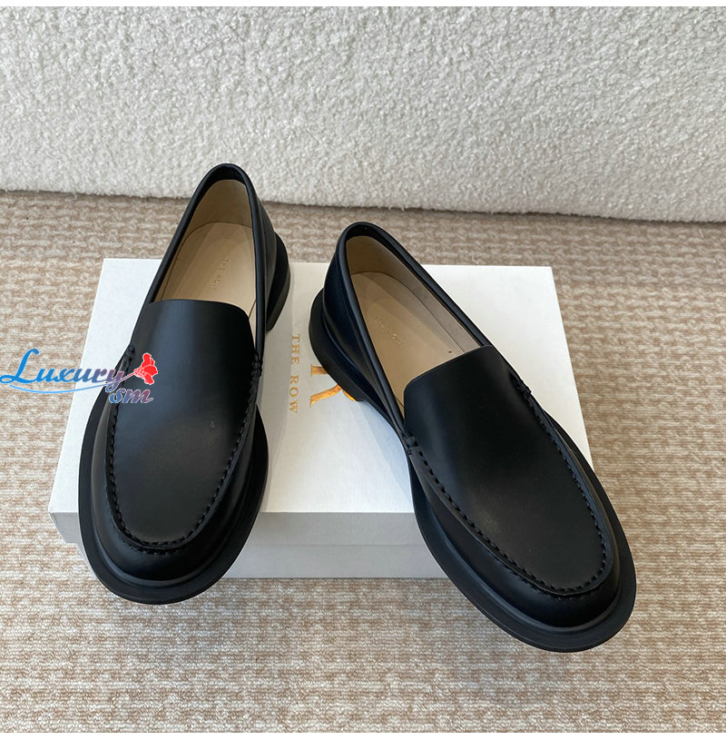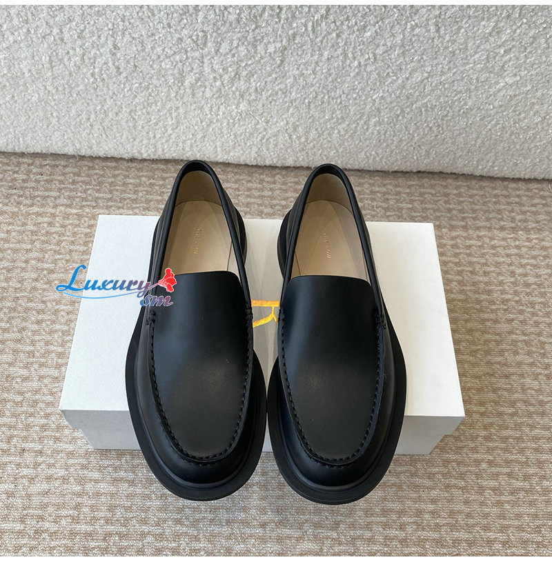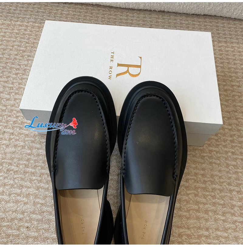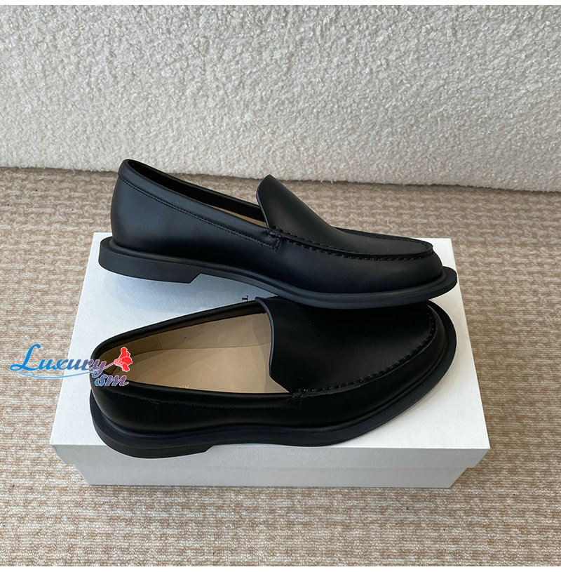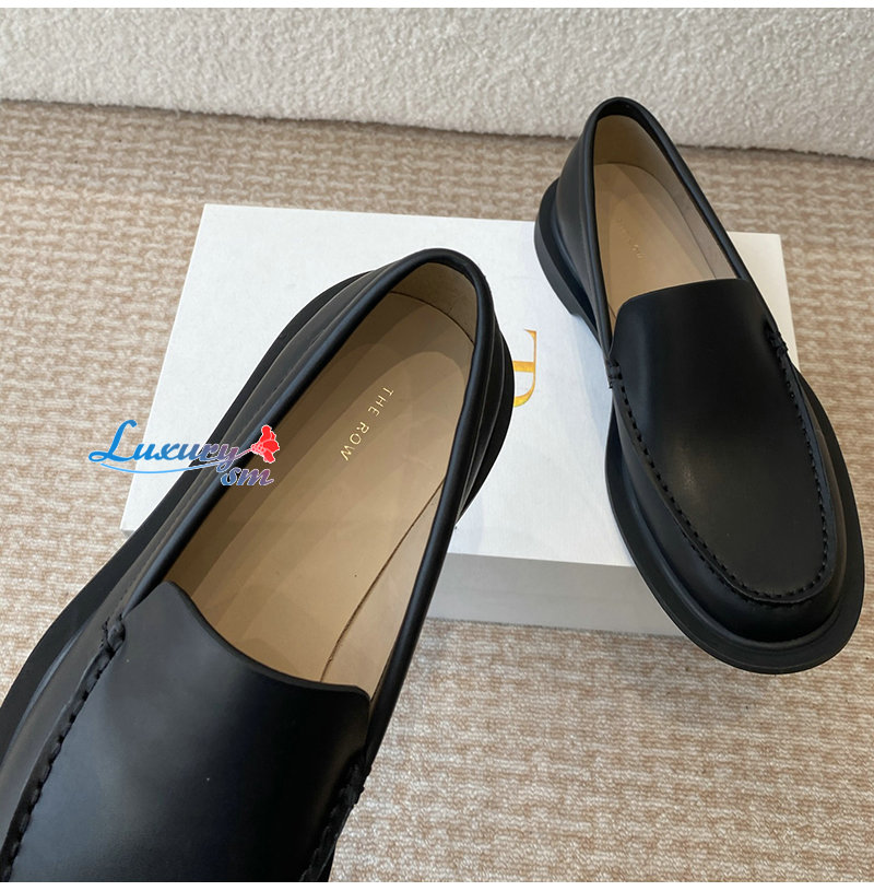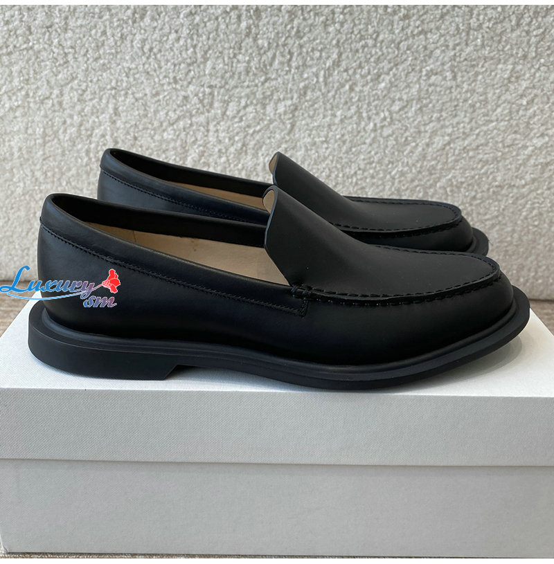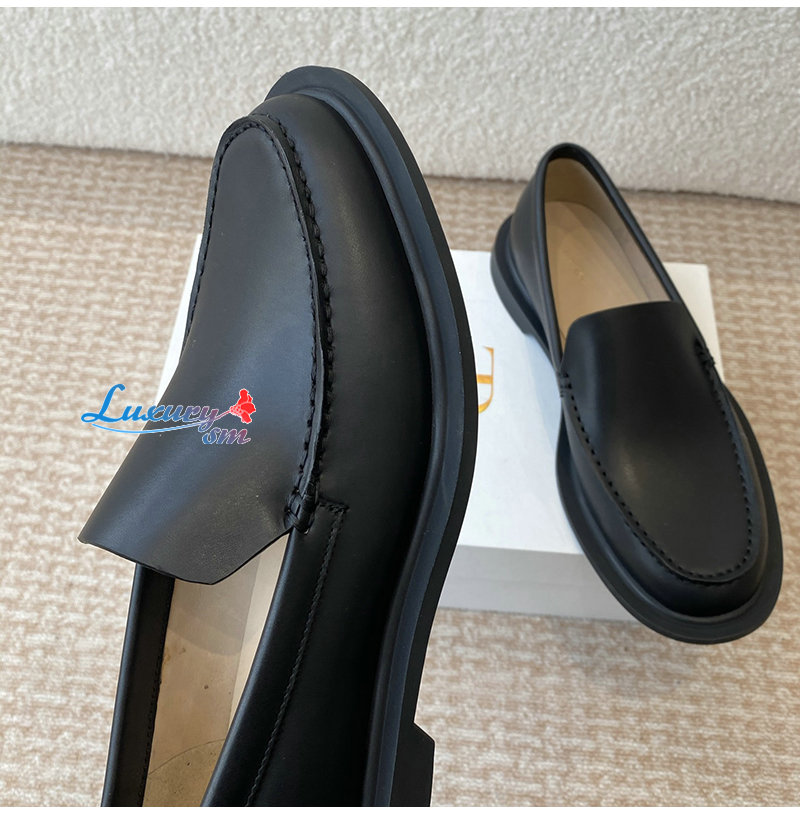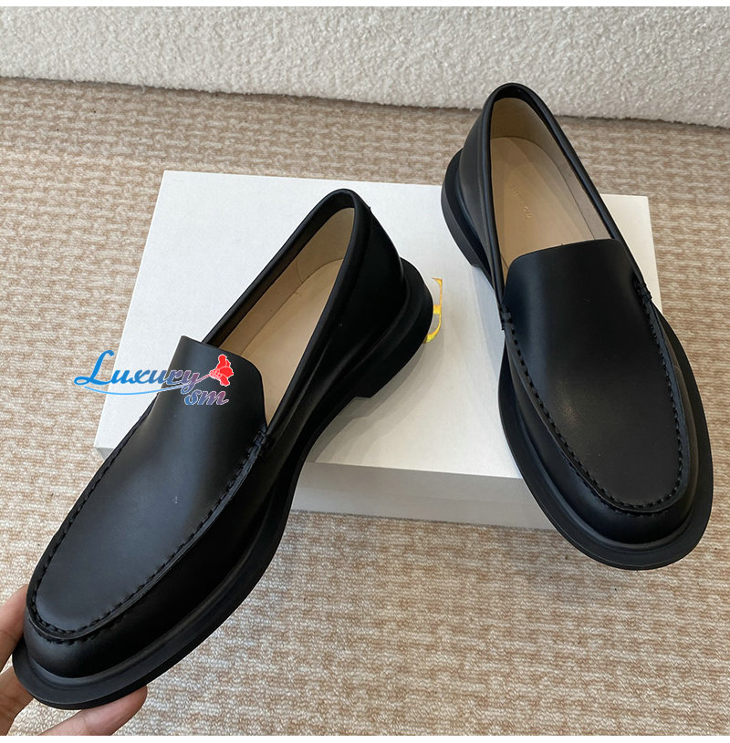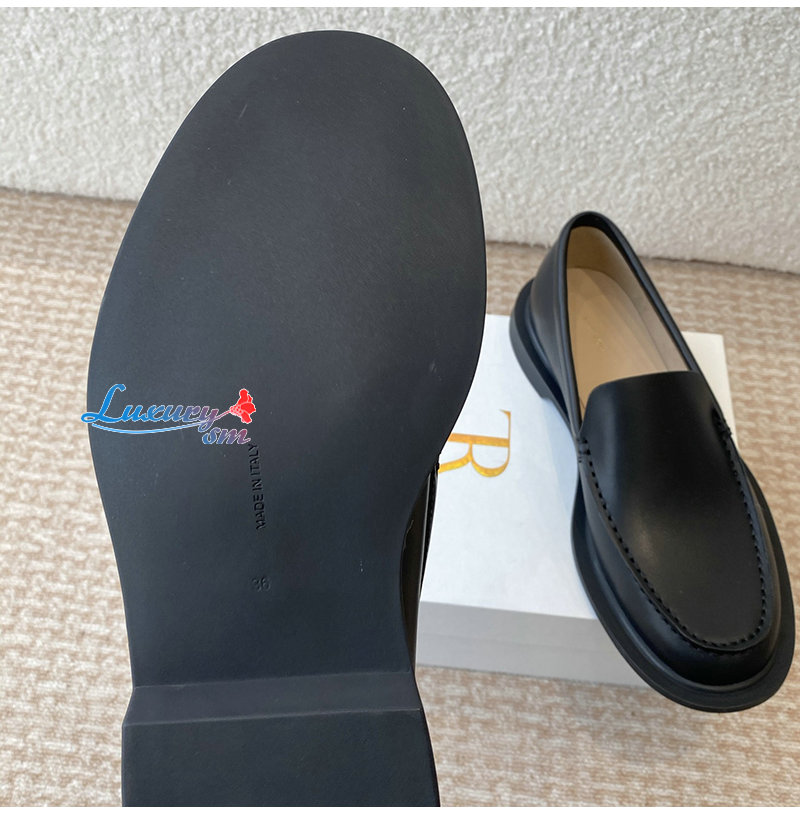 THE ROW-F1602L60 더 로우 블랙 카프스킨 닉 로퍼 여성용