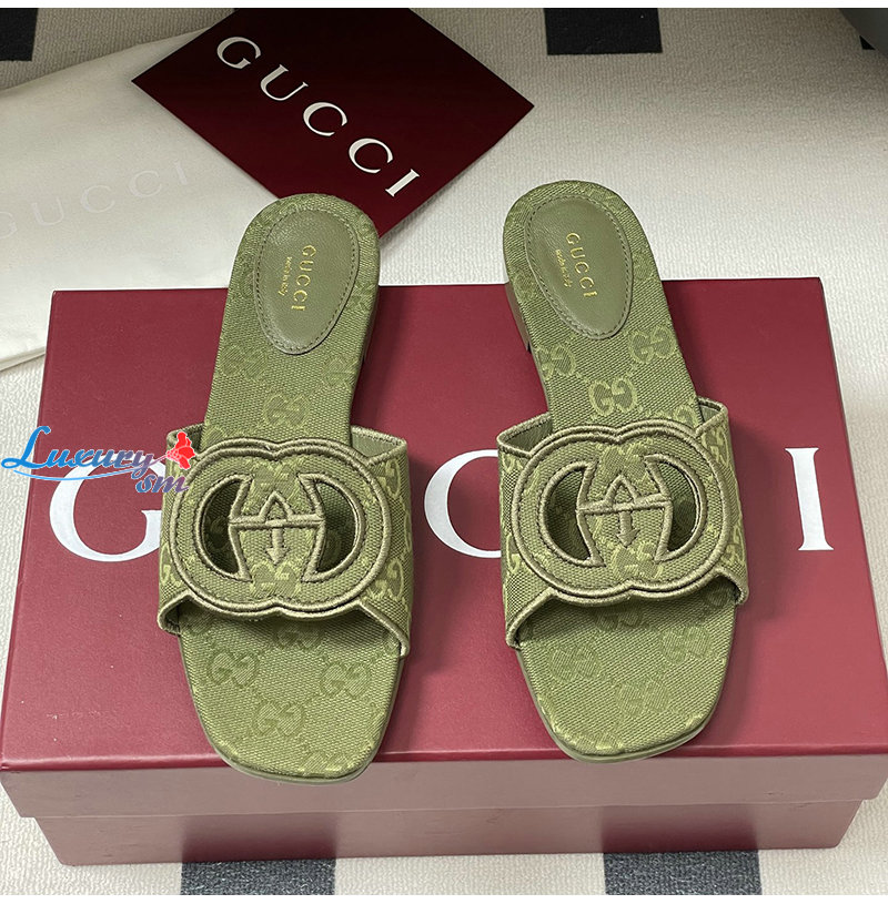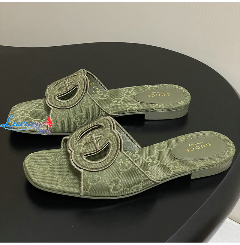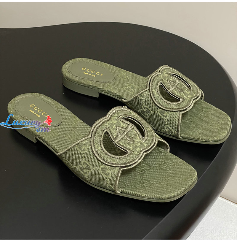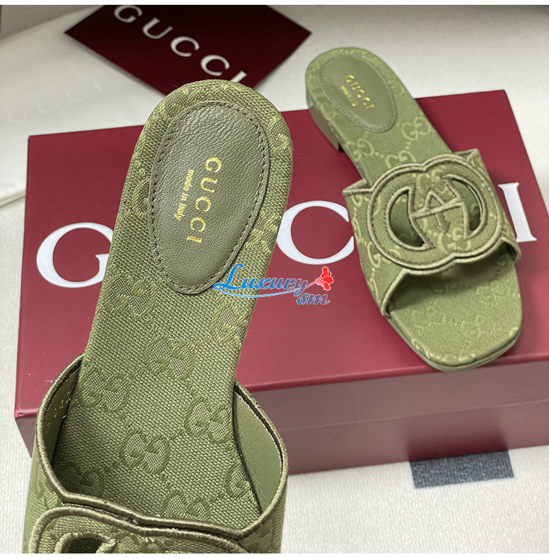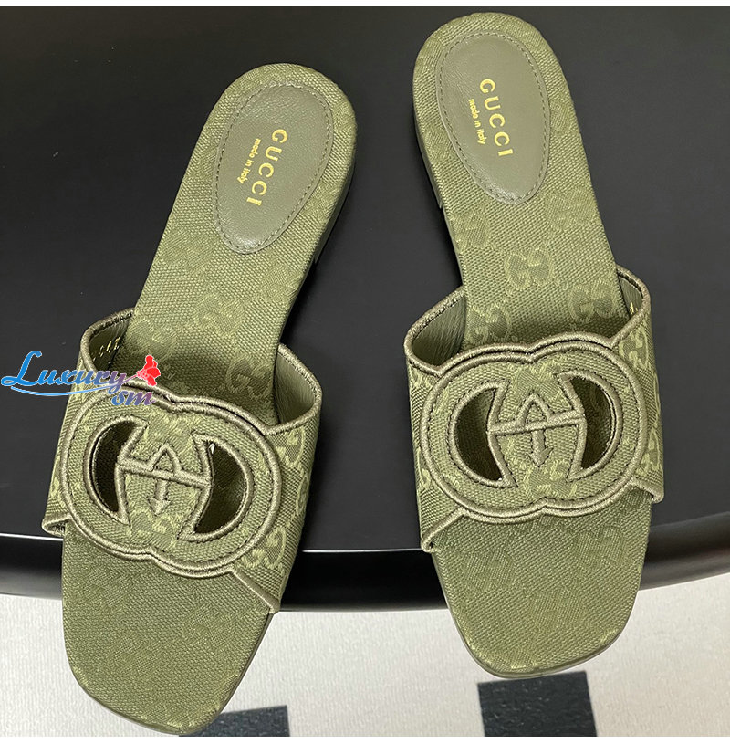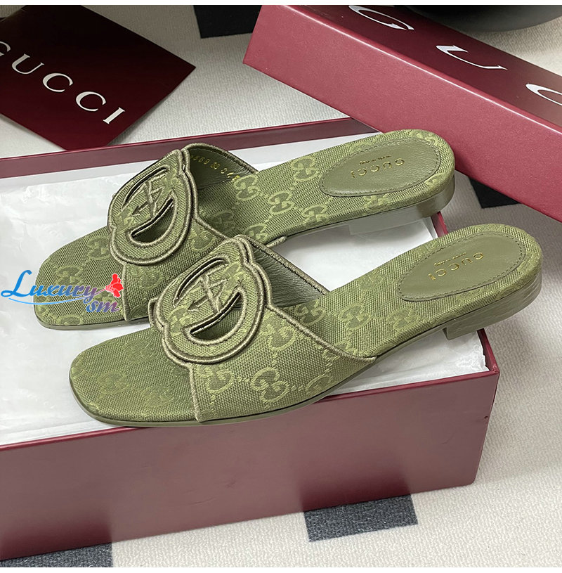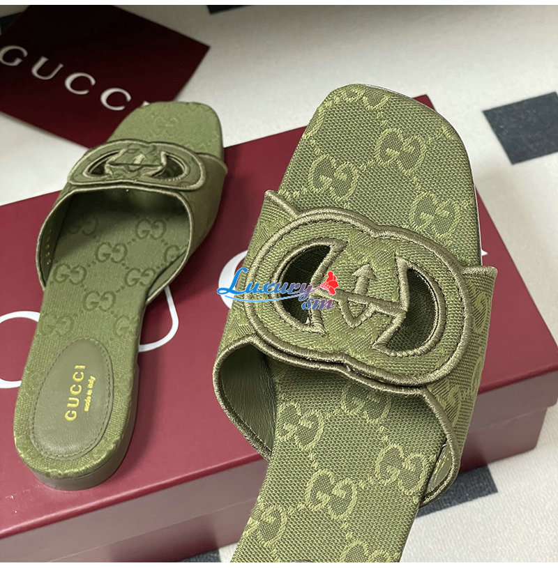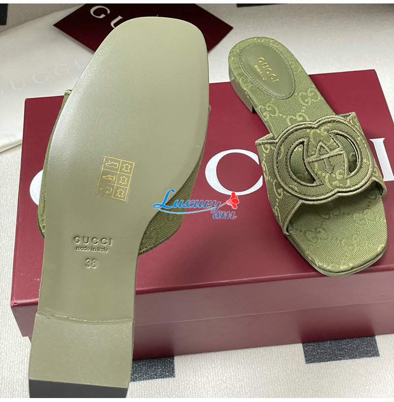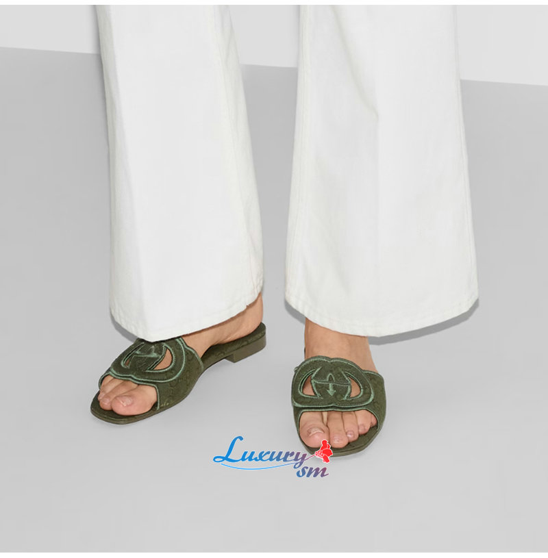 GUCCI-790447 3005 구찌 그린 인터로킹 G 슬라이드 샌들