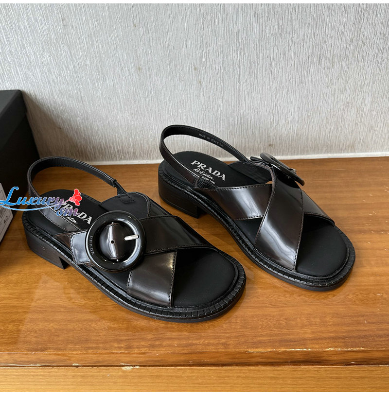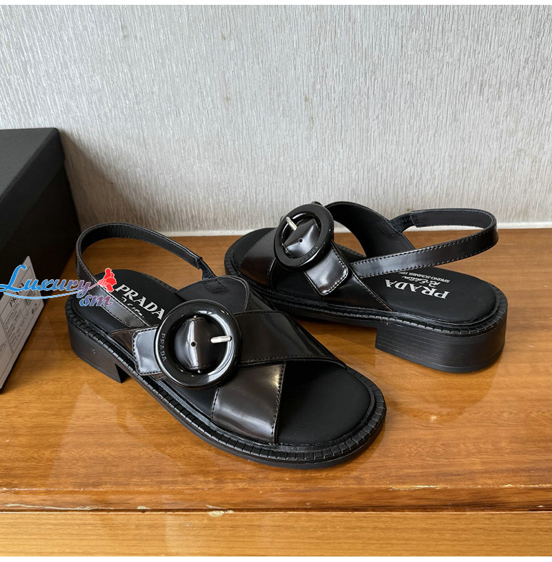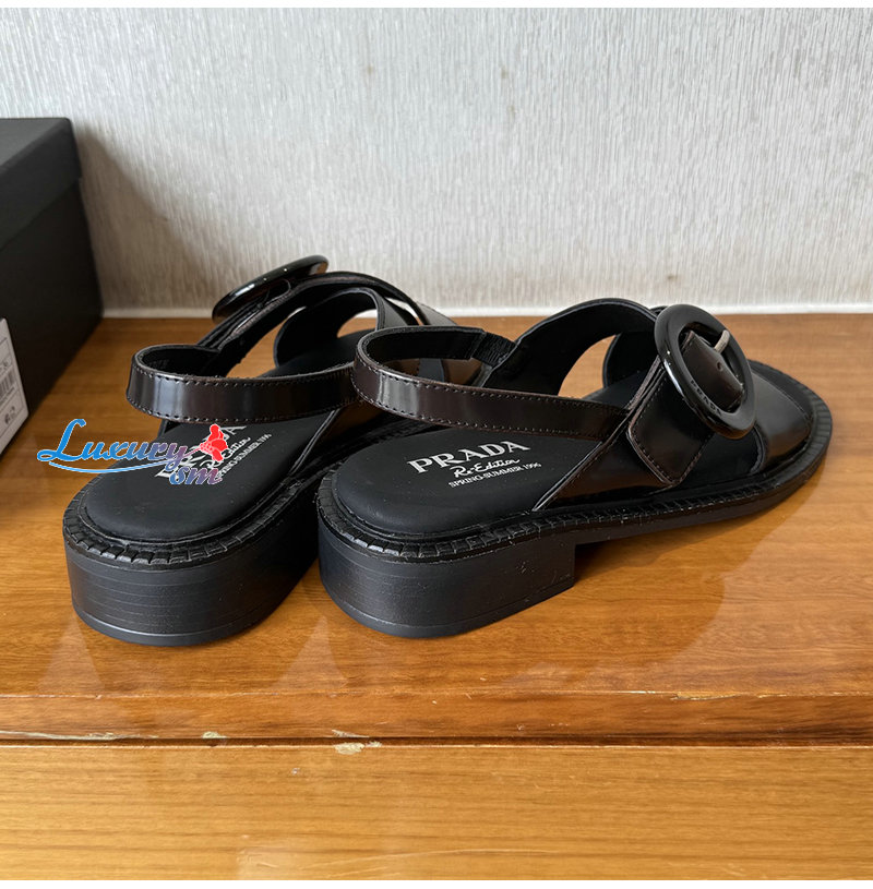PRADA-1X962N 프라다 시에나 버클 장식 브러쉬드 가죽 샌들 여성용