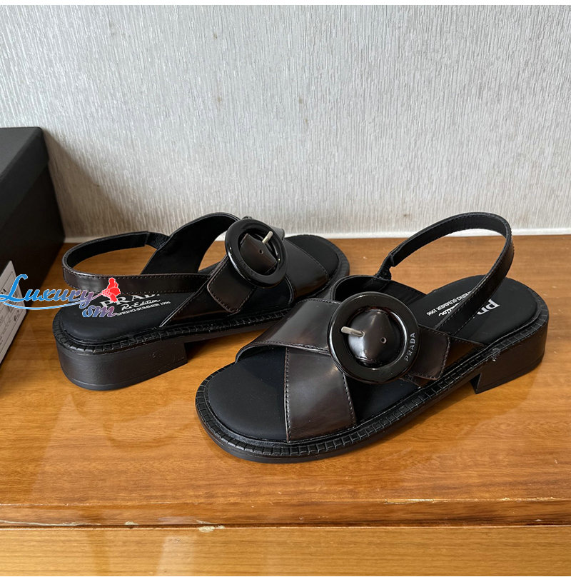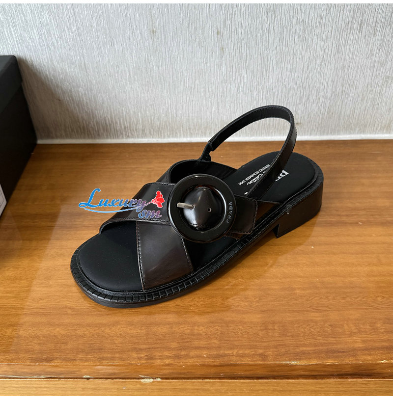 PRADA-1X962N 프라다 블랙 버클 장식 브러쉬드 가죽 샌들 여성용
