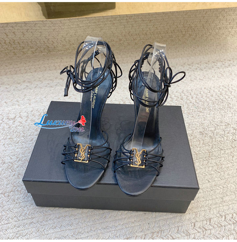 SAINT LAURENT-785706 생 로랑 블랙 램스킨 babylone 샌들