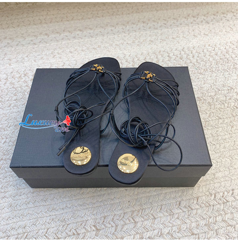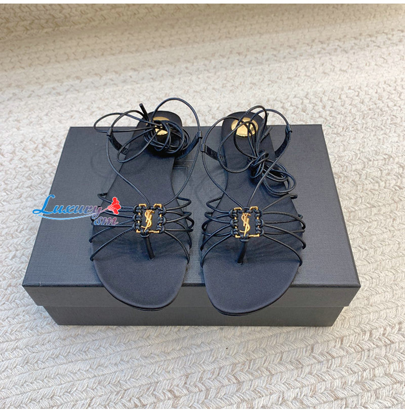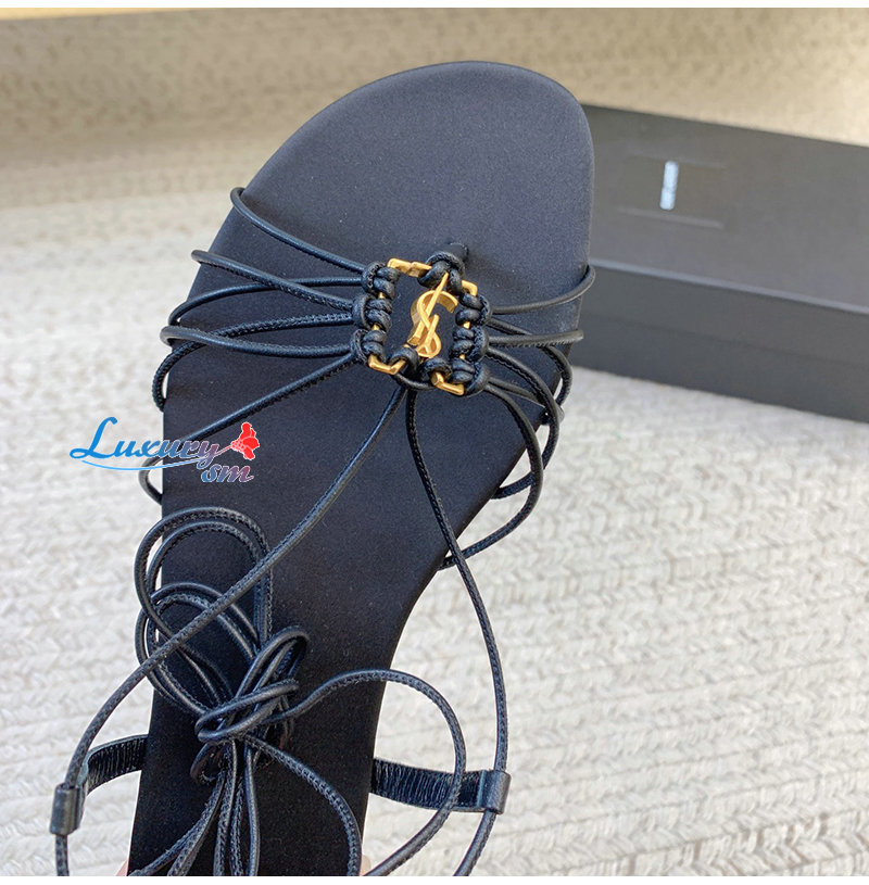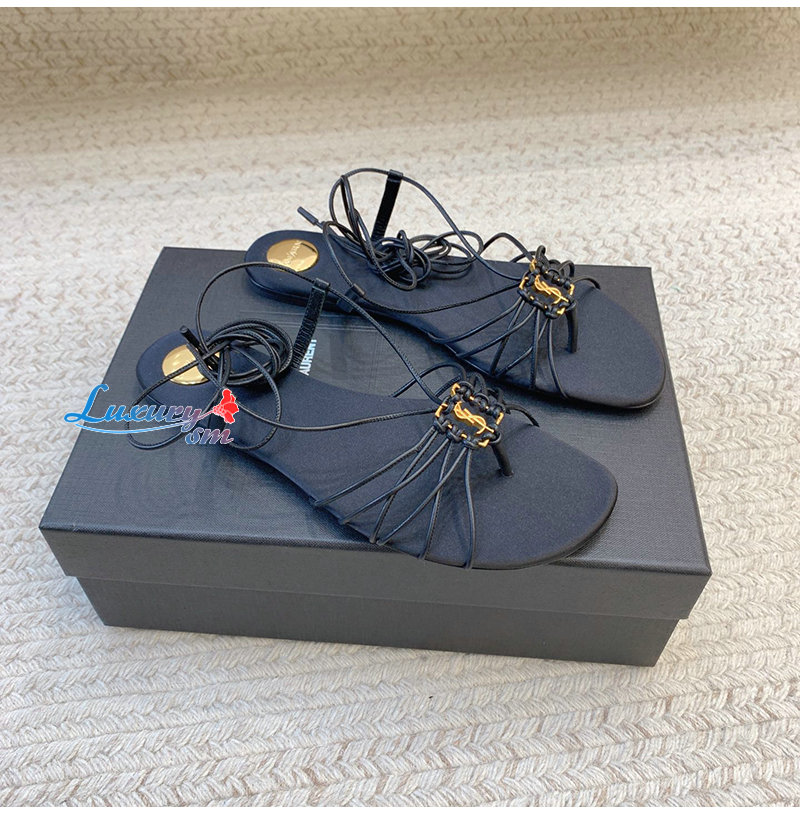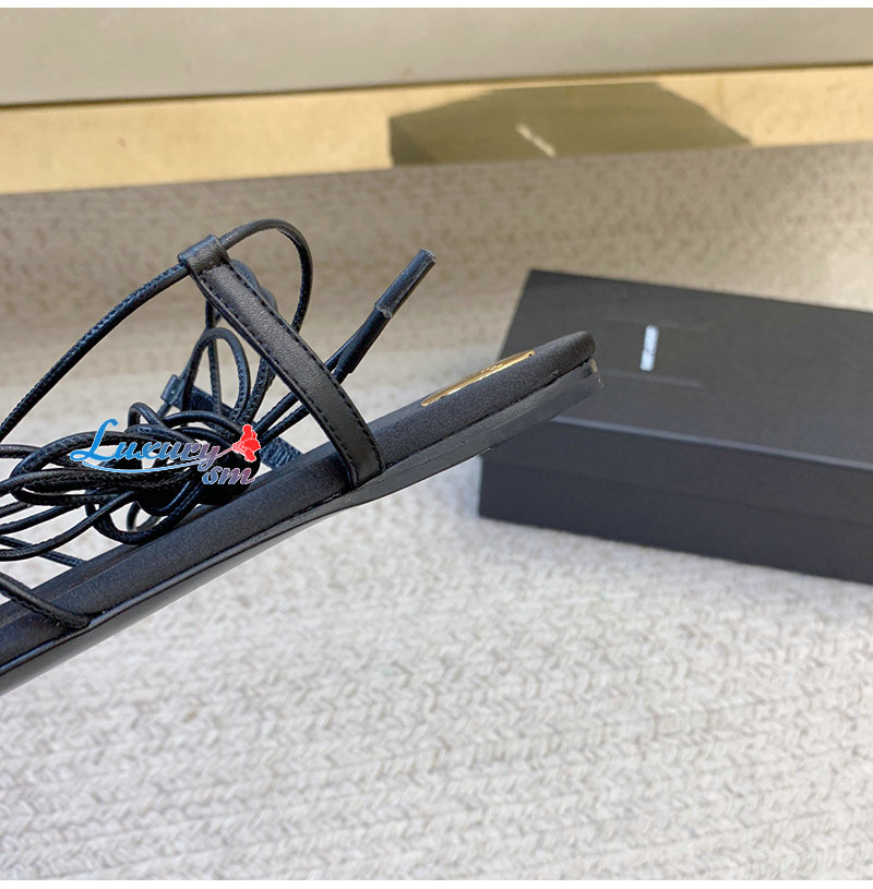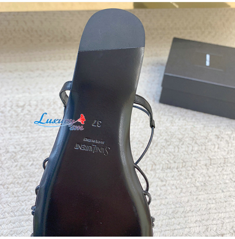 SAINT LAURENT-820656 생 로랑 블랙 램스킨 babylone 샌들