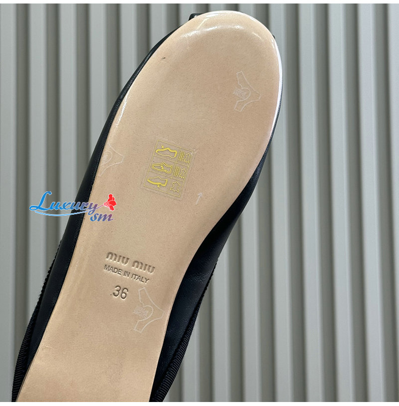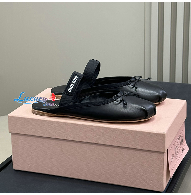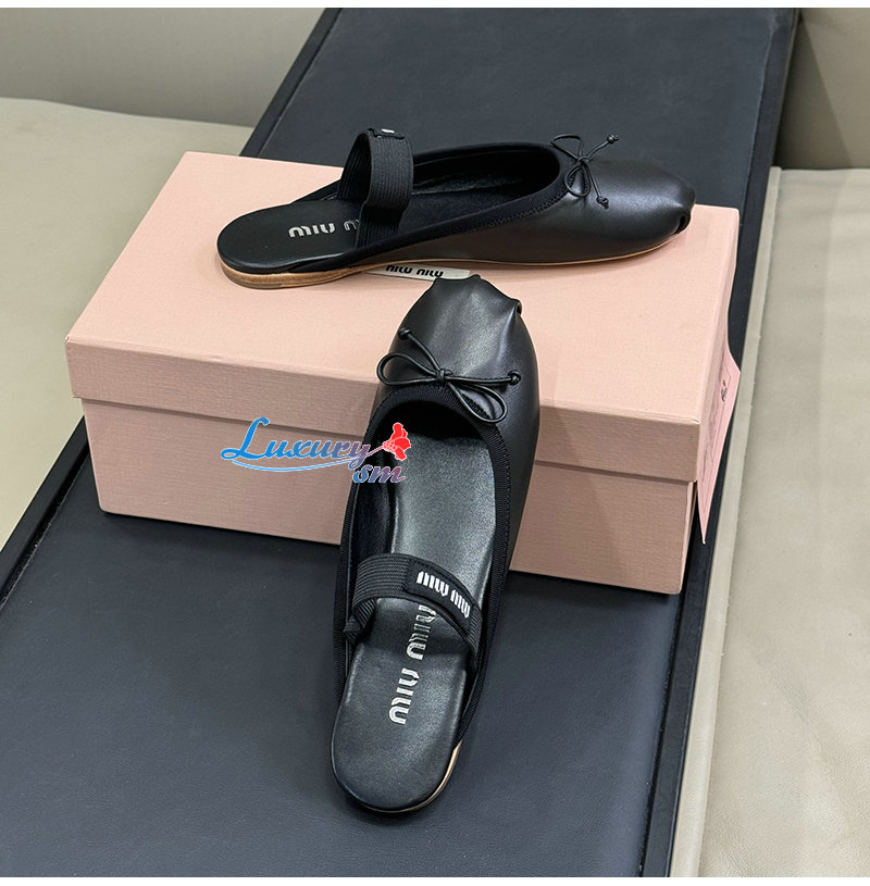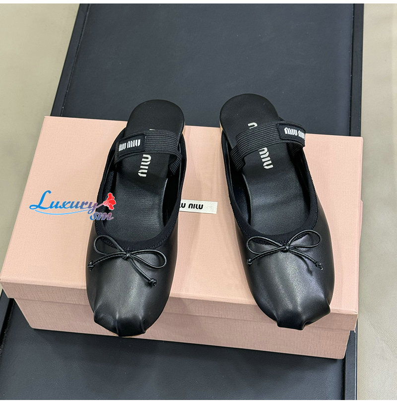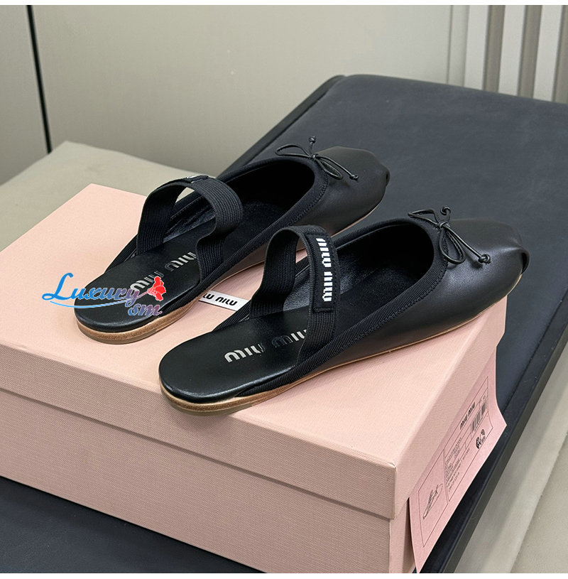 MIUMIU-5F451E 미우미우 블랙 레더 발레리나 뮬
