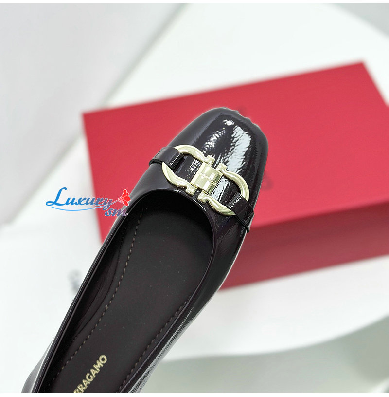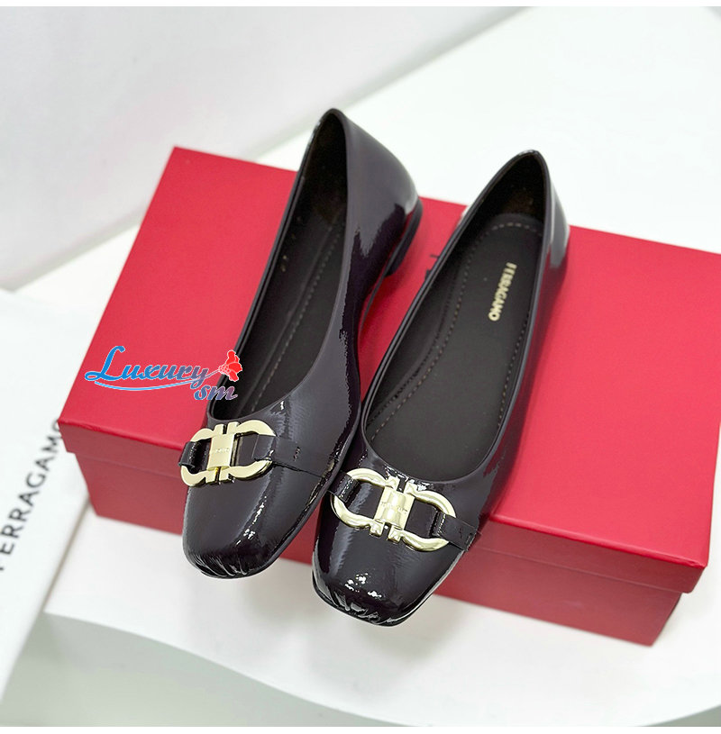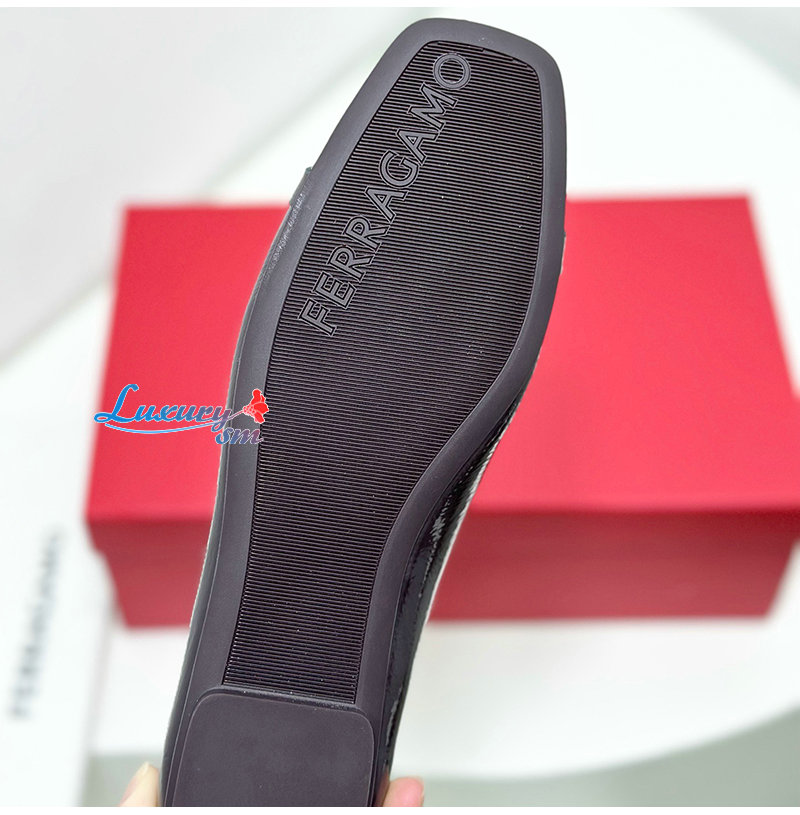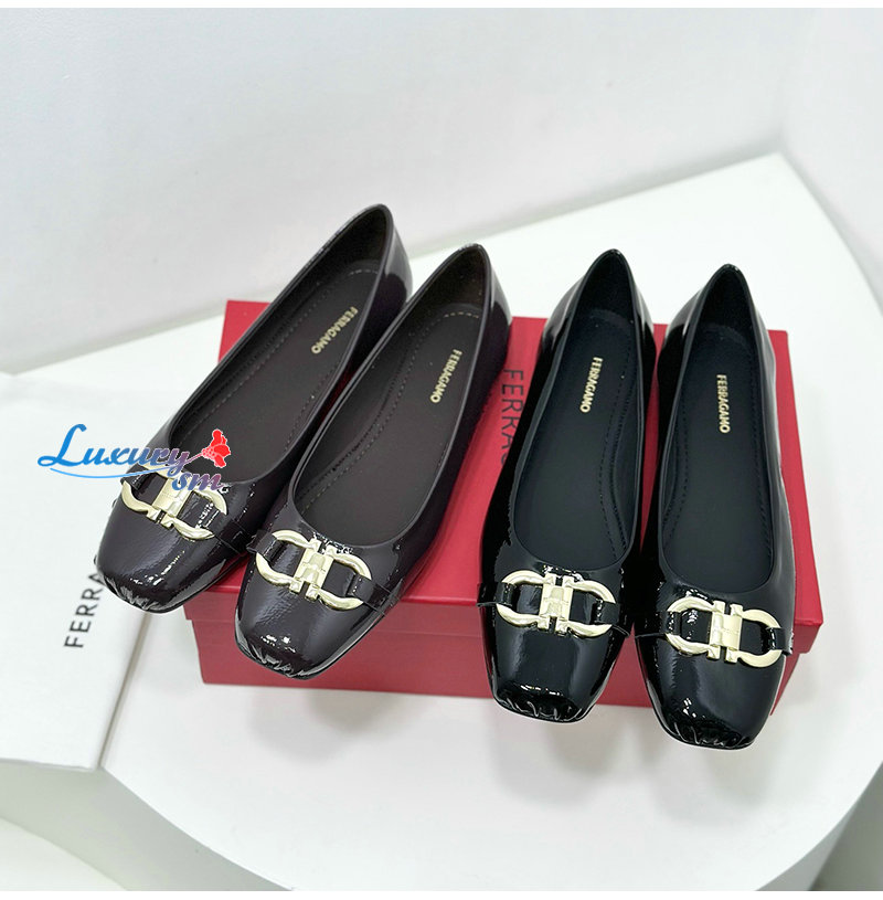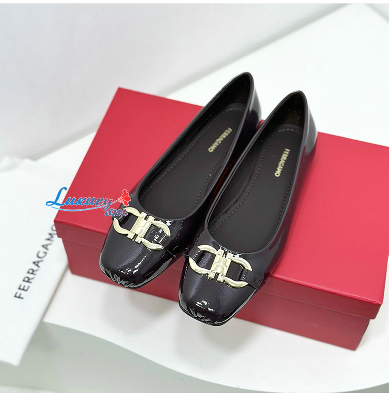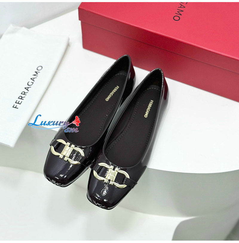 Ferragamo-07116 페라가모 블랙 페이턴트 가죽 발레 플랫 슈즈