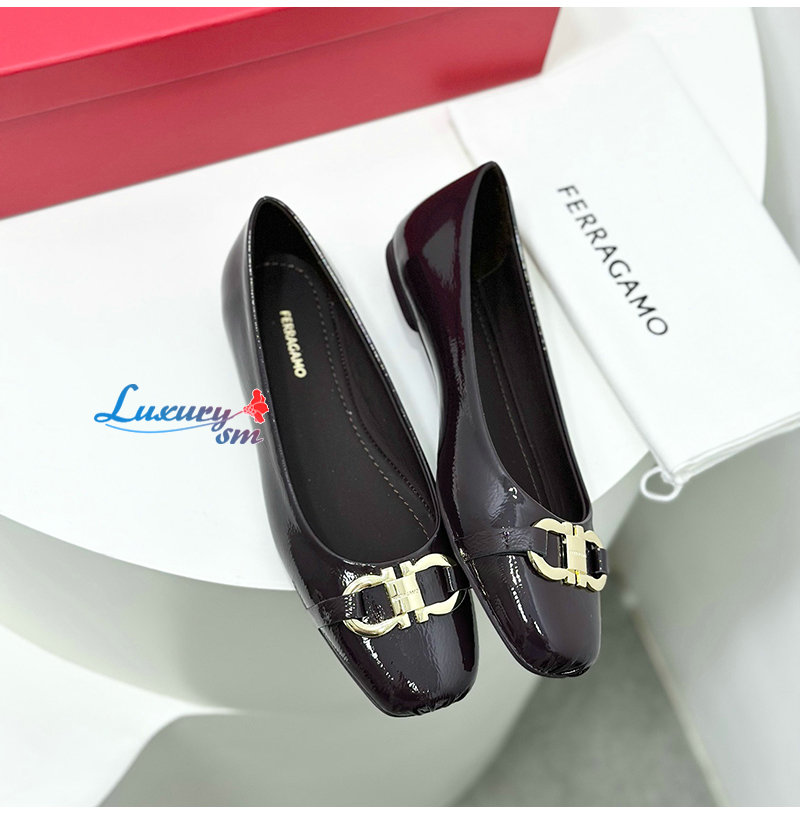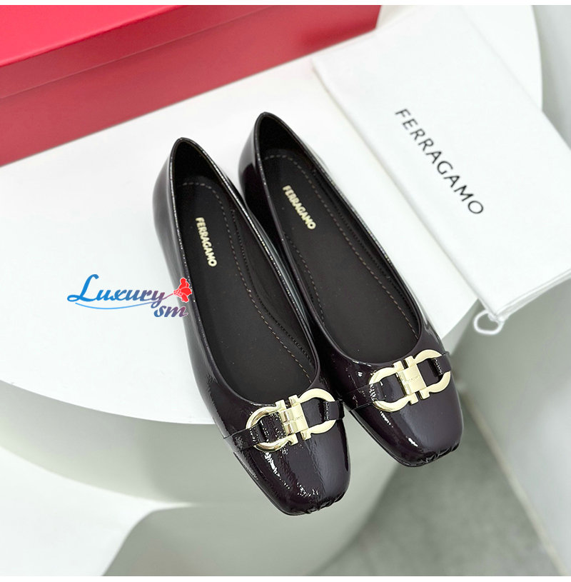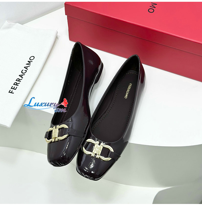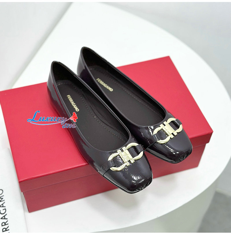 Ferragamo-07117 페라가모 브라운 페이턴트 가죽 발레 플랫 슈즈