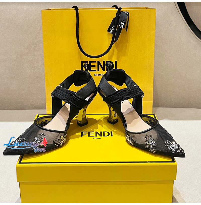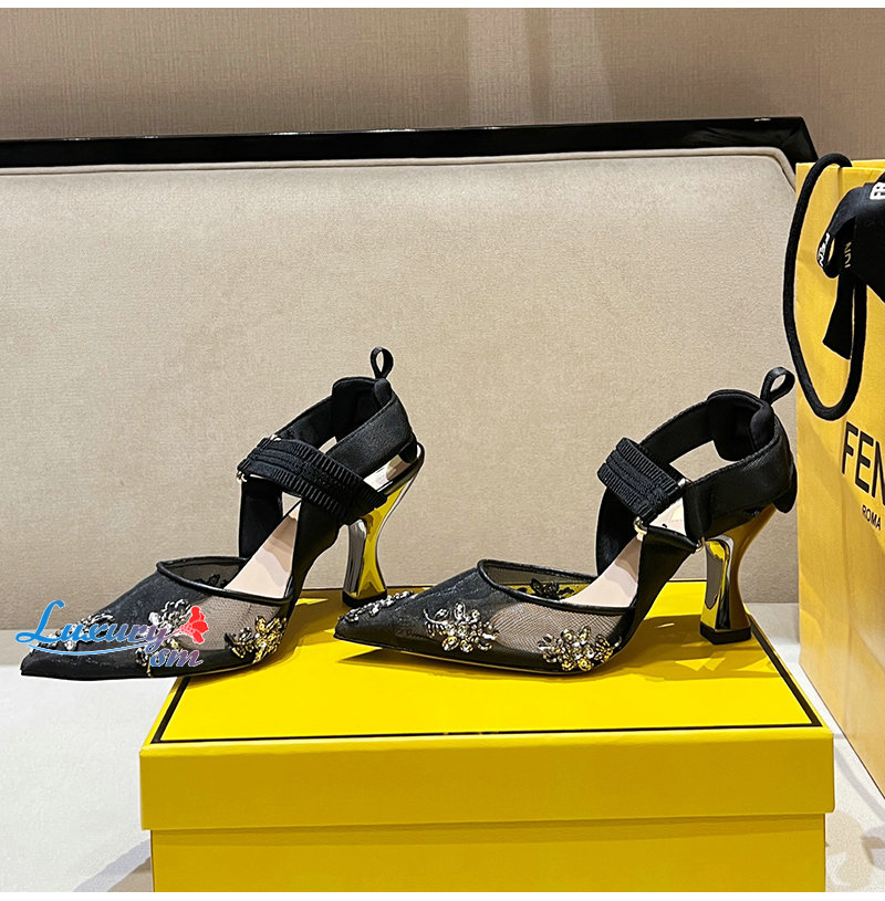 FENDI-8J8702 펜디 블랙 콜리브리 하이힐 슬링백