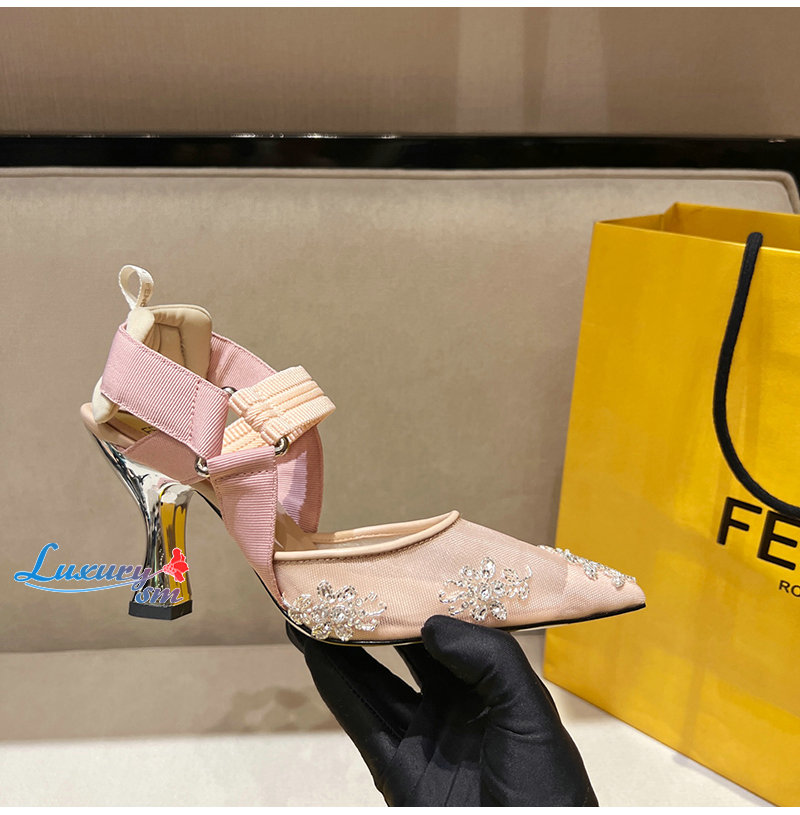 FENDI-8J8702 펜디 핑크 콜리브리 하이힐 슬링백