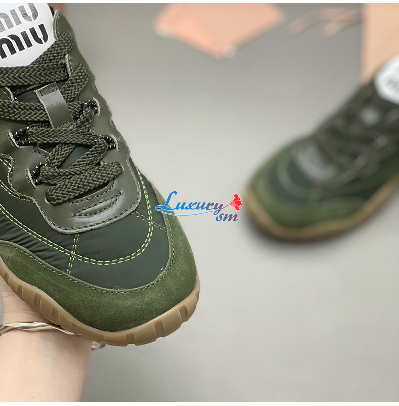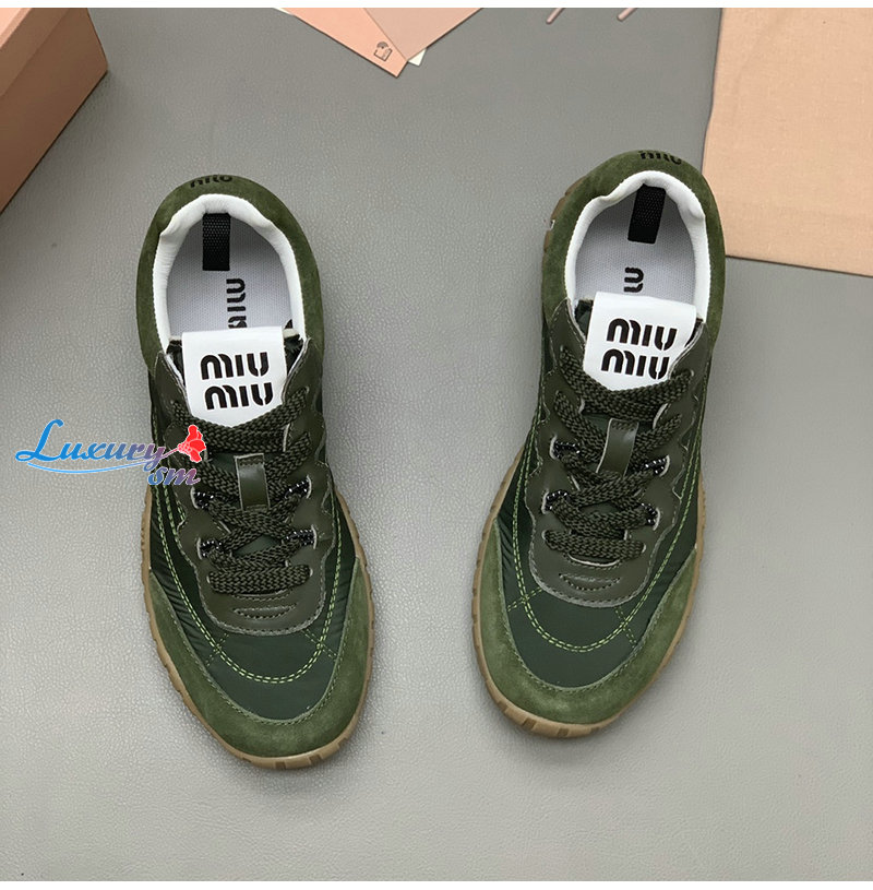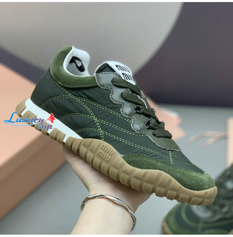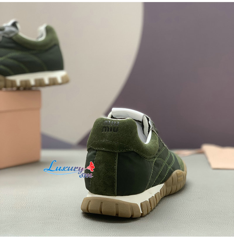 MIUMIU-5E417E 미우미우 그린 타이어 기능성 소재 스웨이드 스니커즈 여성용