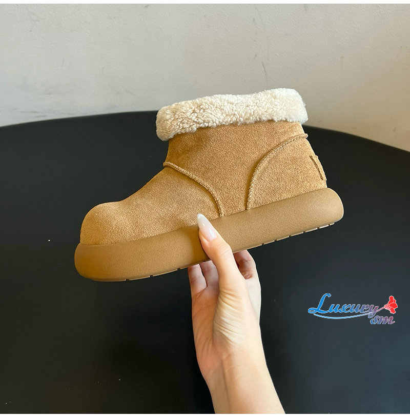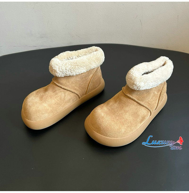 라운드한 "감자 형태"의 신발 몸체와 털이 뒤집힌