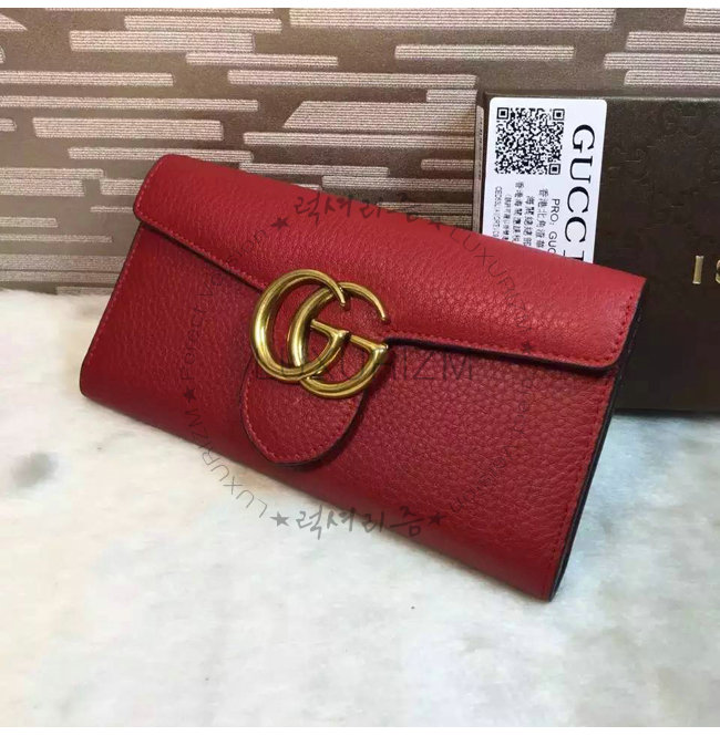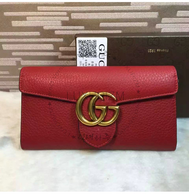 GUCCI-400586 6339 GG Marmont 가죽 레드 장지갑
