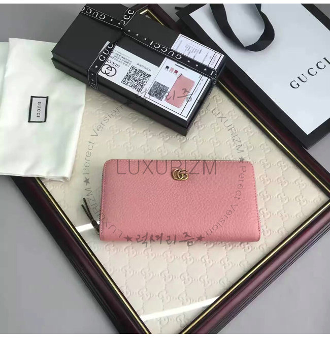 #홍콩레플리카 구찌지갑 클러치 전문 쇼핑몰GUCCI-456117 5909 구찌 더블 G 메탈 디테일 라이트 핑크 지퍼 장 지갑.