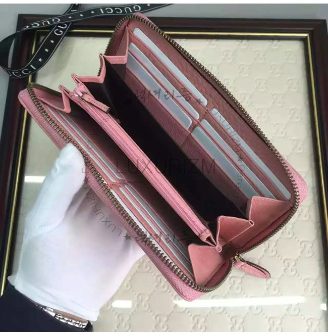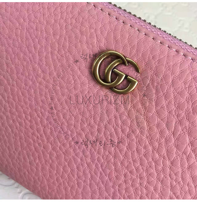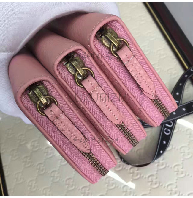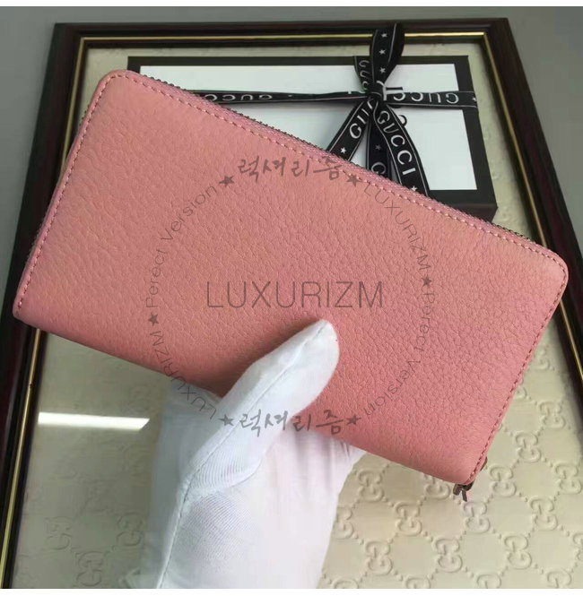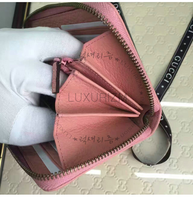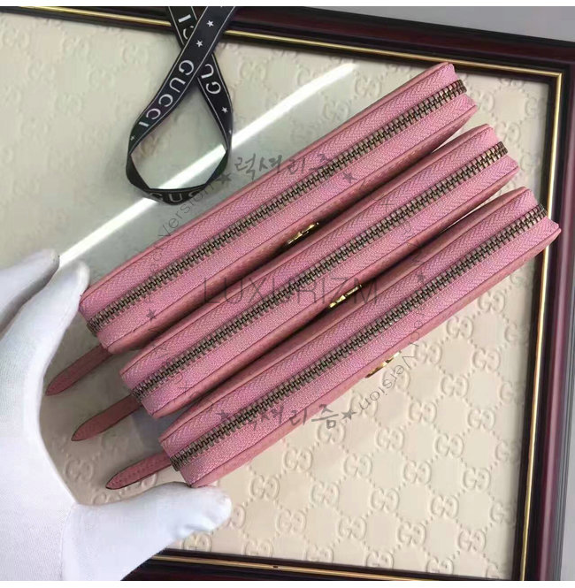 GUCCI-456117 5909 구찌 더블 G 메탈 디테일 라이트 핑크 지퍼 장 지갑