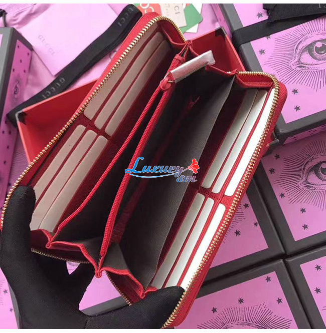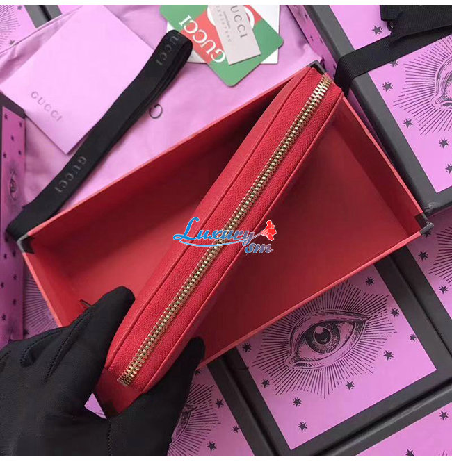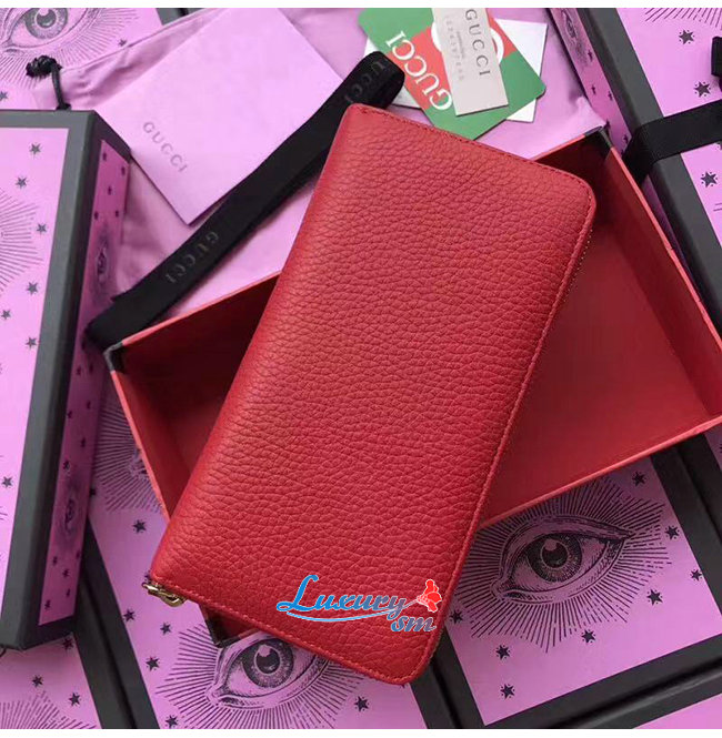 GUCCI-456117 6433 구찌 더블 G 메탈 디테일 레드 지퍼 장 지갑