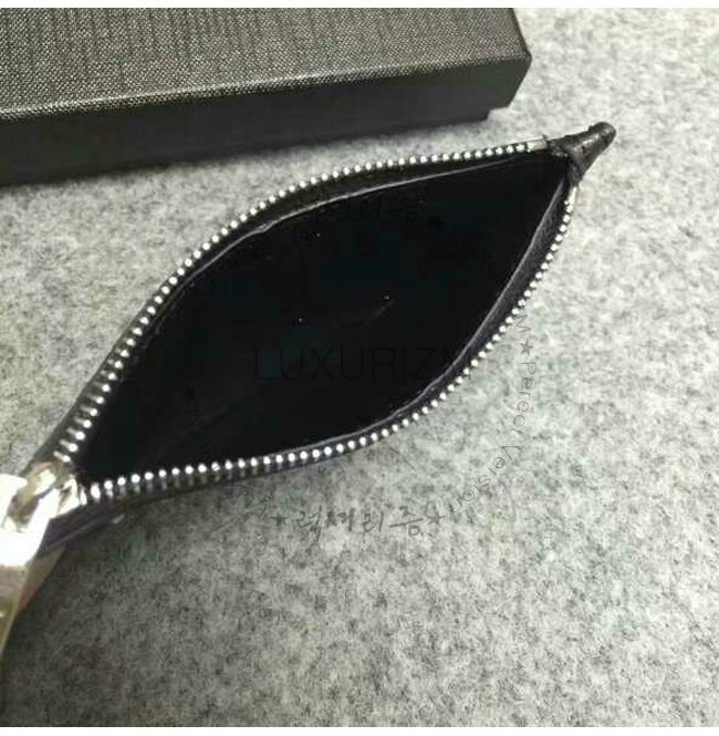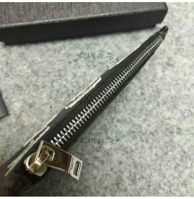 #홍콩명품지갑SAINT LAURENT-생 로랑 블랙 가죽 실버 메탈릭 그레인드 가죽 소재 라이더 캘리포니아 5 프라그망 지퍼지갑.