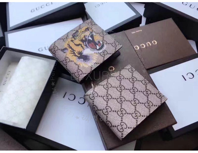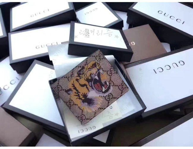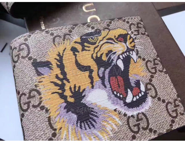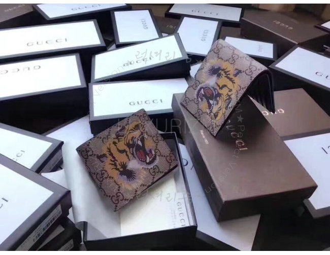 -2017크루즈컬렉션/에보니GG수프림 캔버스 타이거 프린트/8개의 카드 슬롯 2개지폐 컴파트먼트.