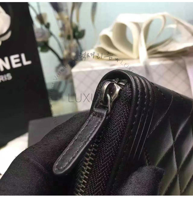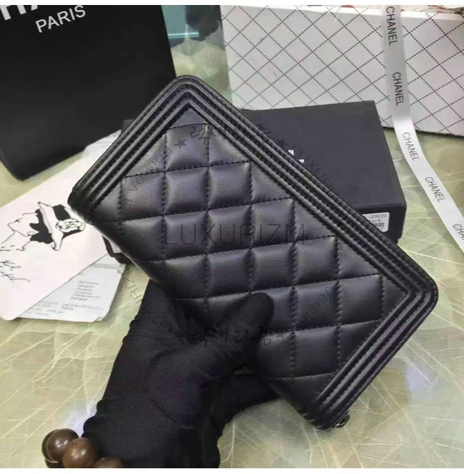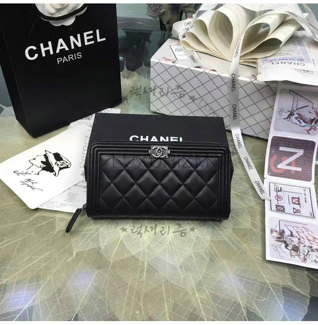 [스페셜오더]CHANEL-A80815 샤넬 보이 램스킨 루테늄 메탈 지퍼 지갑 블랙