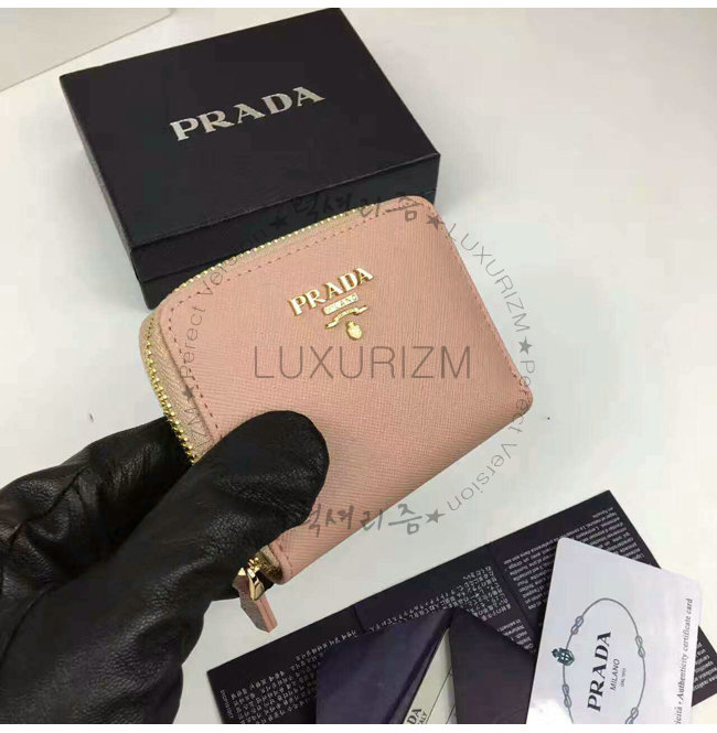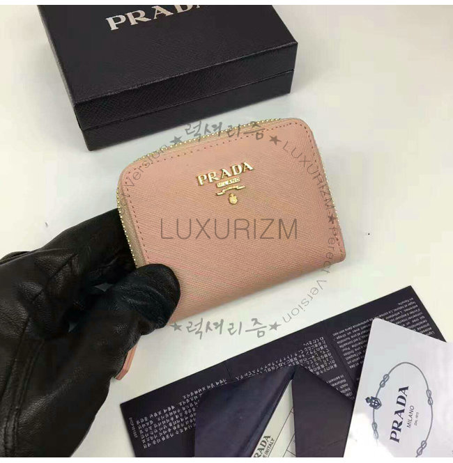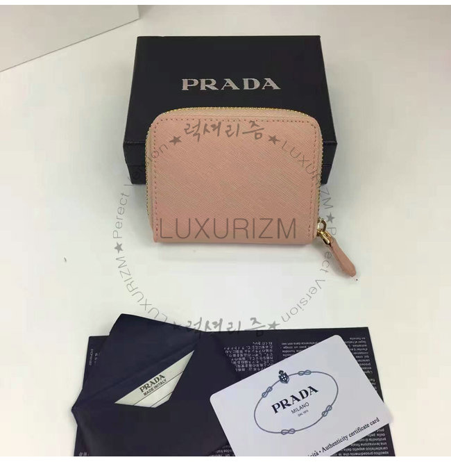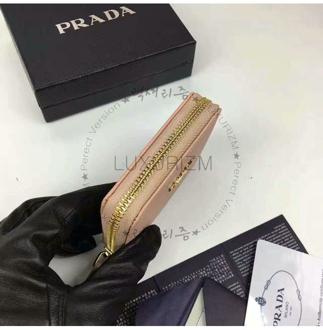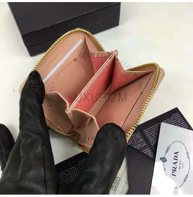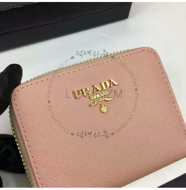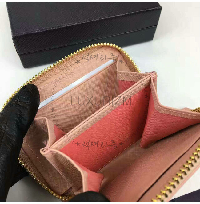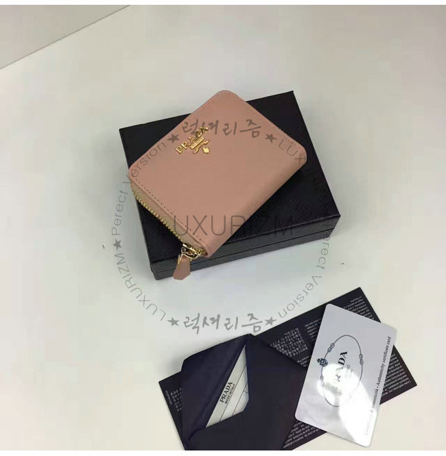 PRADA-1MM268 프라다 사피아노 메탈릭 골드 가죽 동전 지갑 연핑크