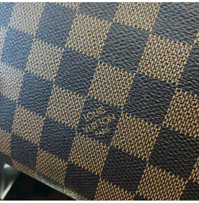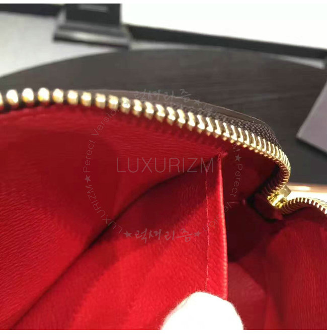 대형 지퍼로 잠기는 다미에 캔버스 라인의 코스메틱 파우치입니다.뷰티 용품들을