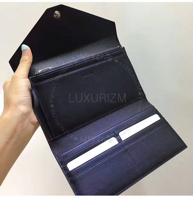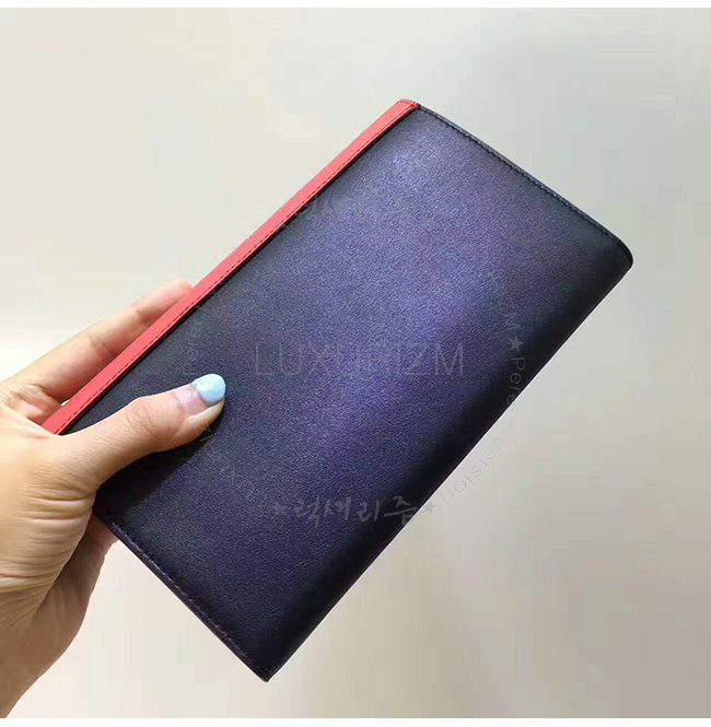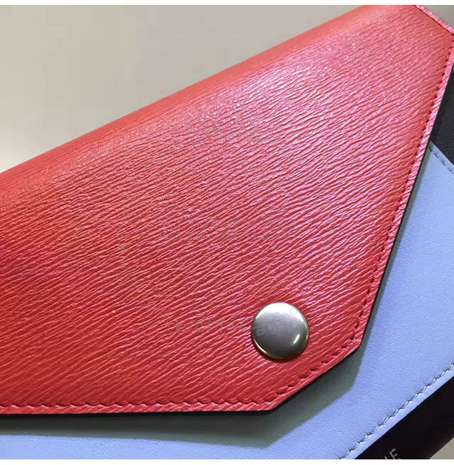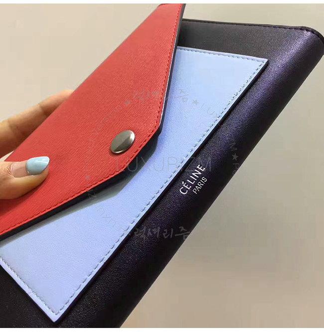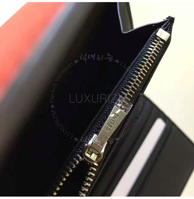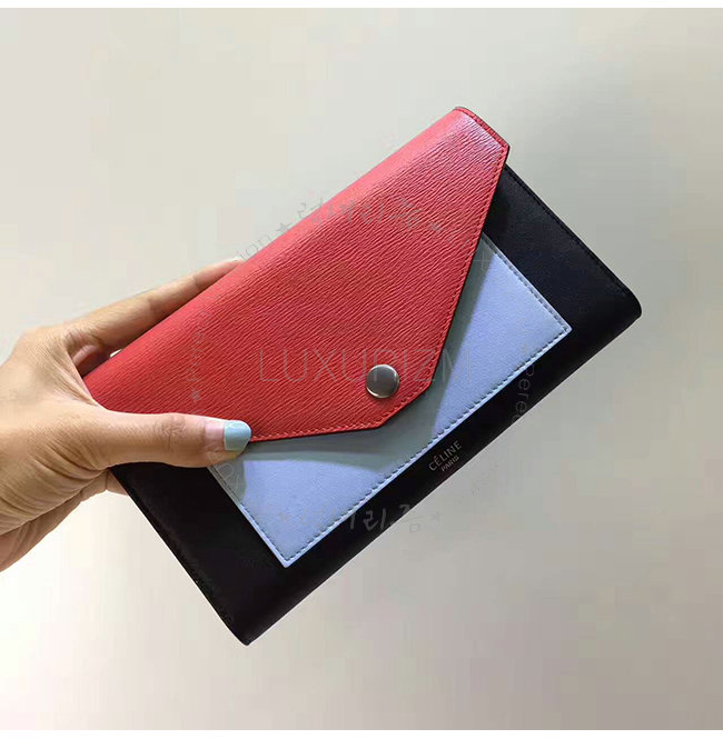 CELINE-105853 셀린느 레드 스카이블루 카프스킨 플랩 장지갑 여성용