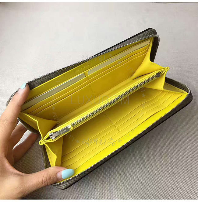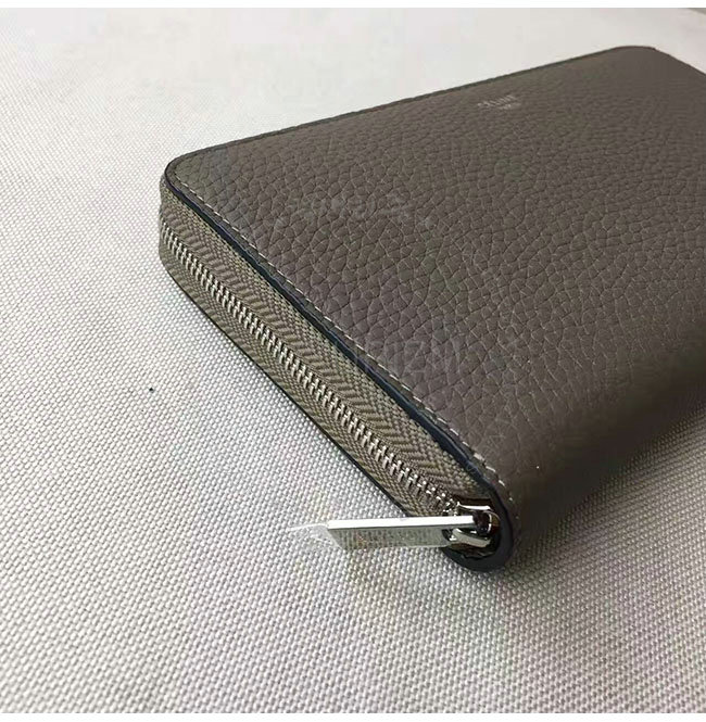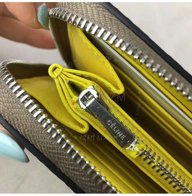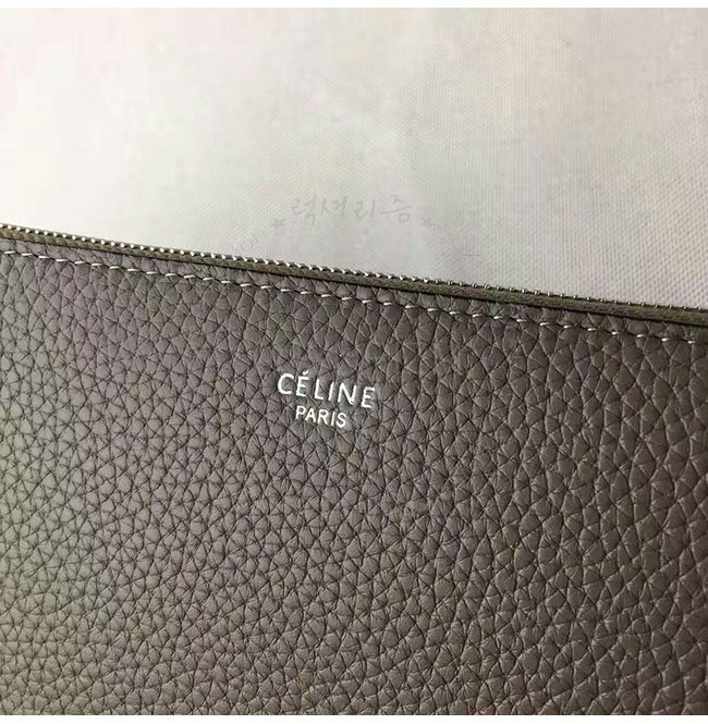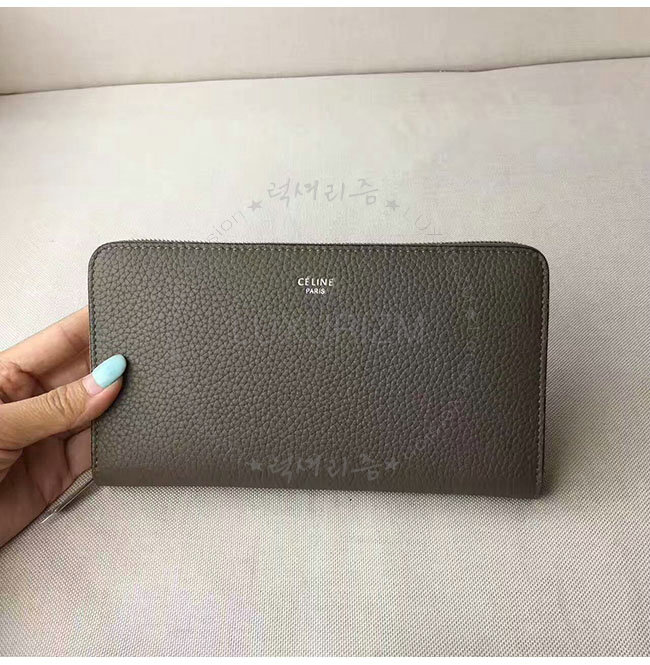 CELINE-105003 셀린느 라지 지퍼 카프스킨 라운드 그레이 장지갑 여성용