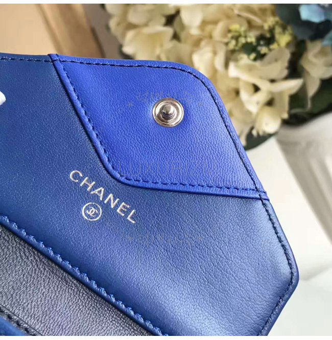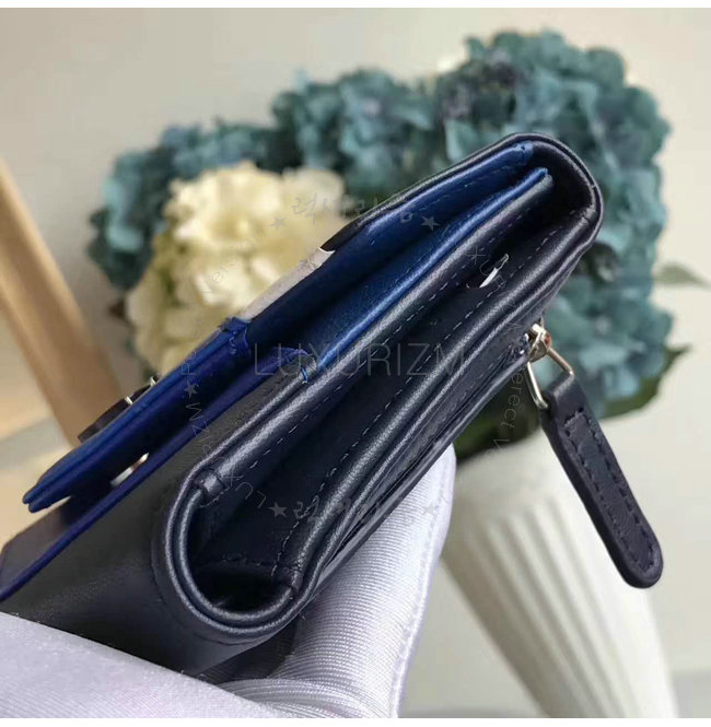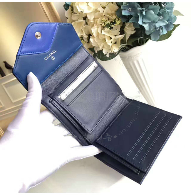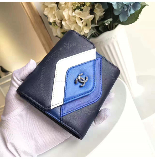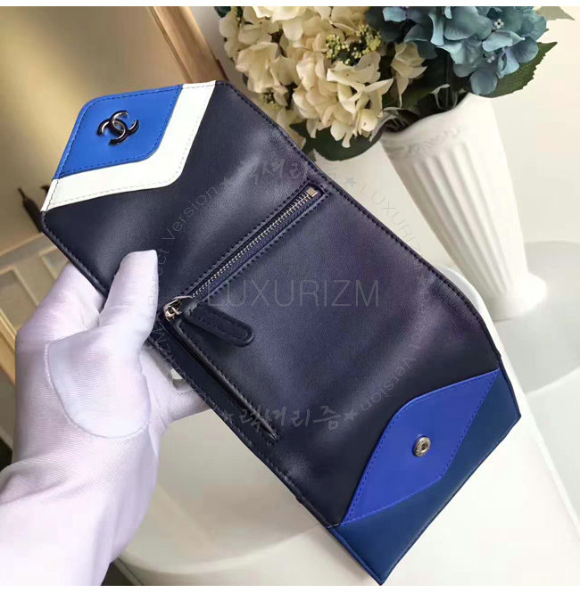[스페셜오더]CHANEL-A82624 샤넬 램스킨 레커드 실버 메탈 더블 월릿 네이비