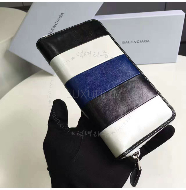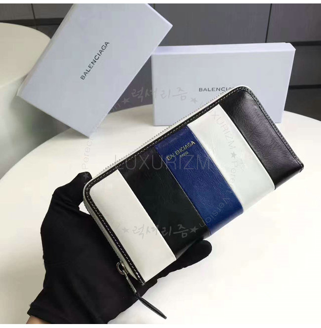 [스페셜오더]BALENCIAGA-발렌시아가 빈티지 양가죽 바자 컨티넨탈 지퍼 어라운드 울릿 블루 화이트 블랙