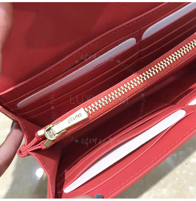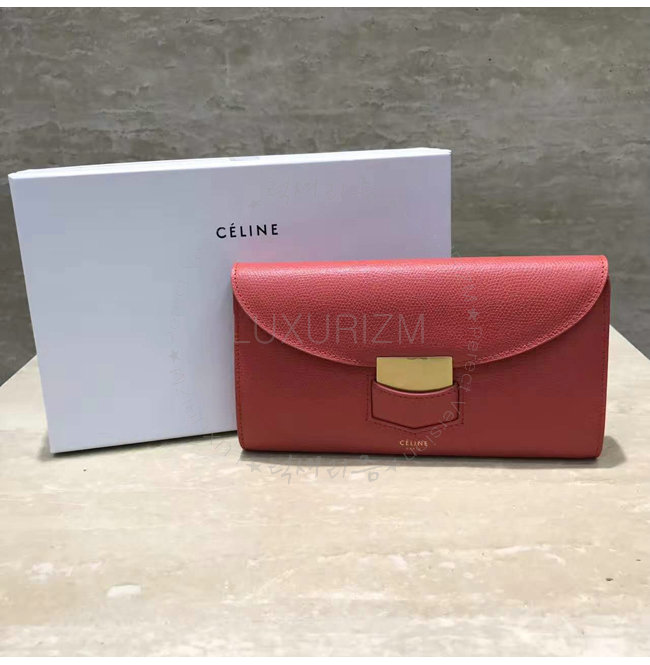 CELINE-107853 셀린느 다크 핑크 카프스킨 멀티펑션 트로터 라지 플랩 장지갑