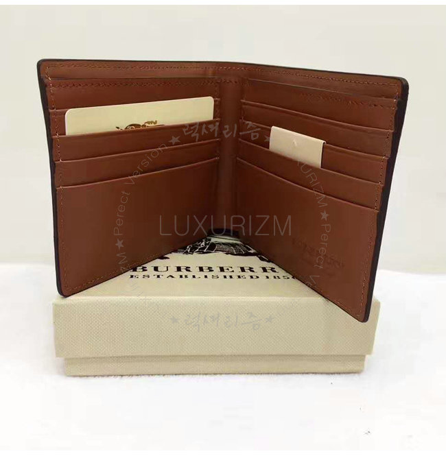 슬롯 8개 모든 화폐 사이즈에 맞는 칸막이 지폐수납칸 슬립포켓 2개 앞면의 버버리 엠보싱 로고.