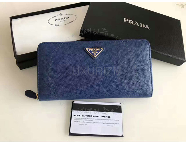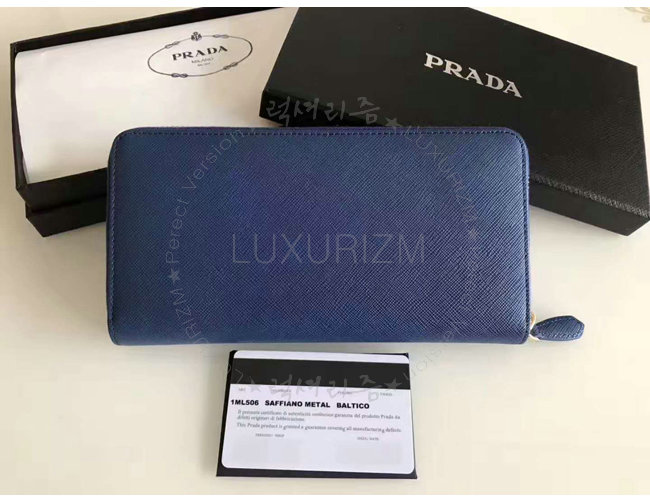 [스페셜오더]PRADA-1ML506 프라다 사피아노 가죽 네이비 지퍼 지갑