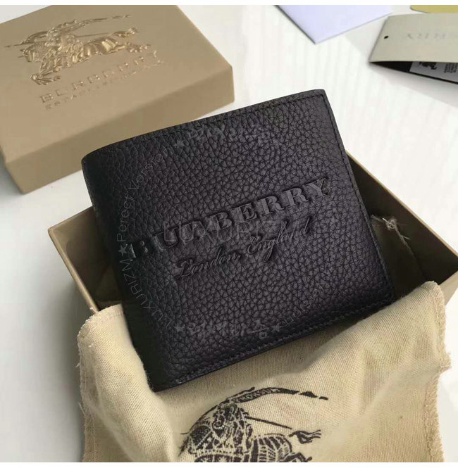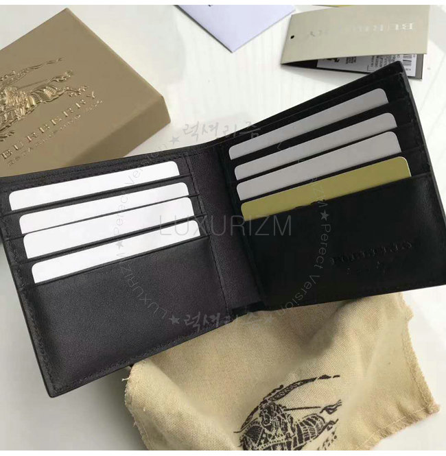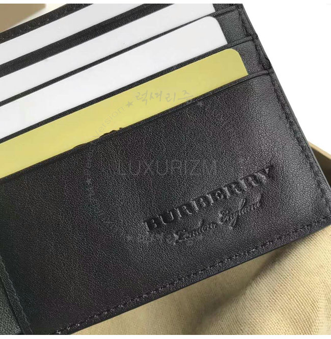 BURBERRY-40585541 버버리 블랙 엠보싱 가죽 바이폴드 지갑
