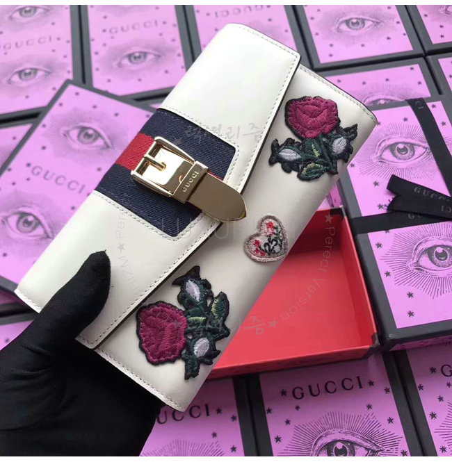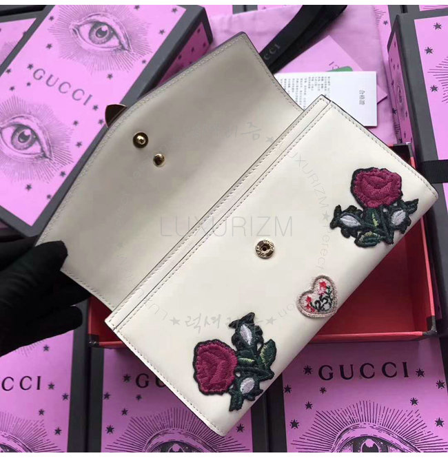 [스페셜오더]GUCCI-476084 8406 구찌 Gucci Sylvie 화이트 가죽 꽃 자수 장지갑