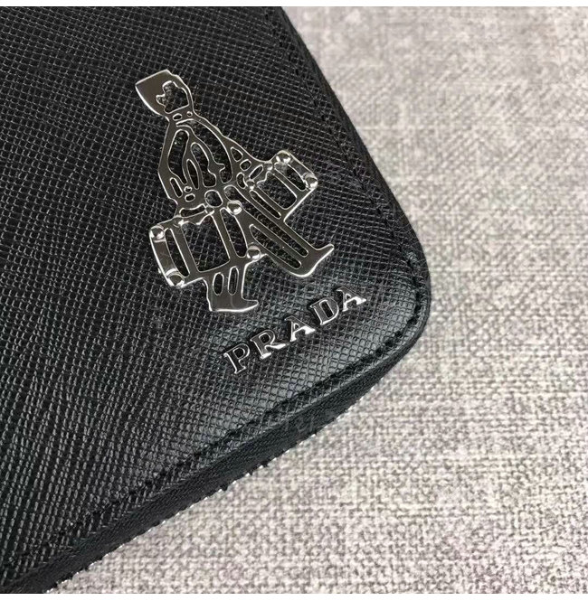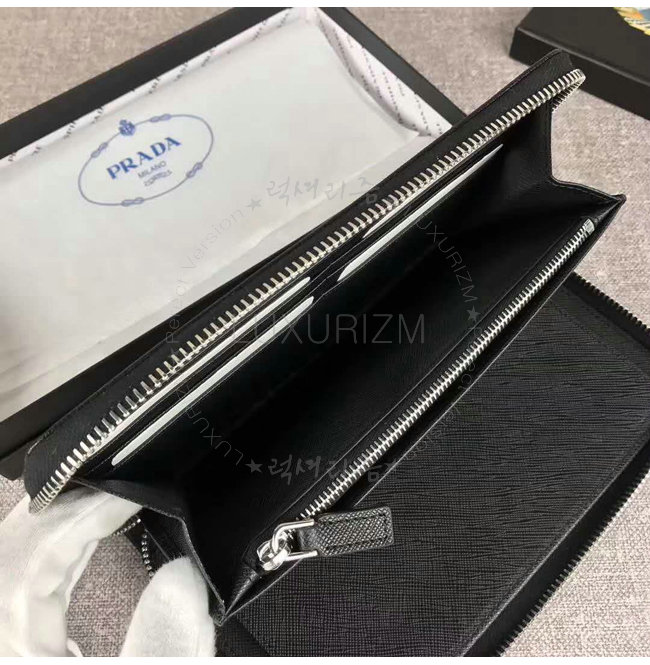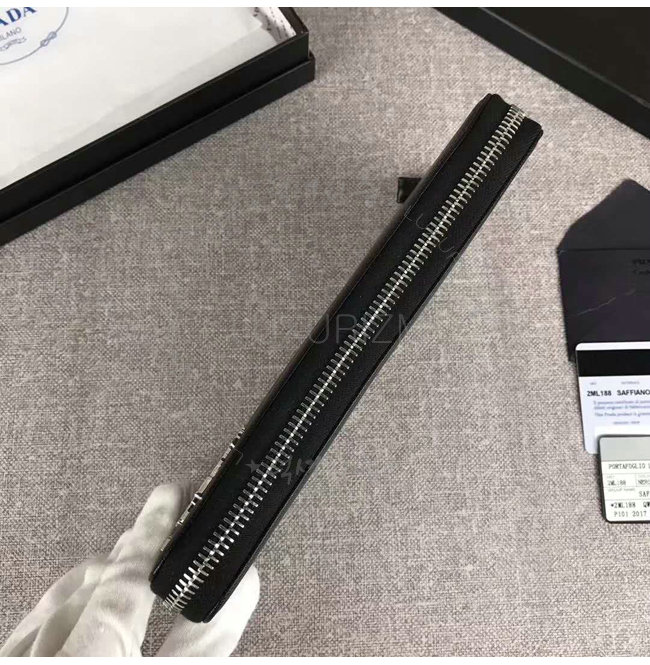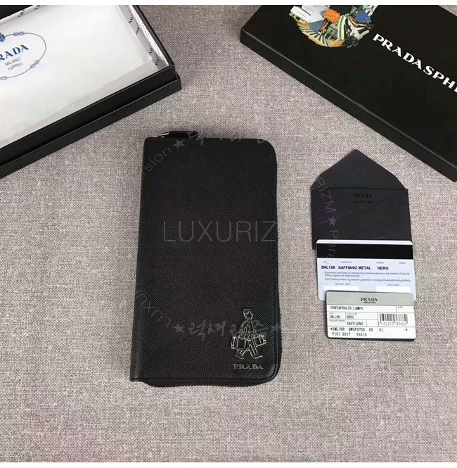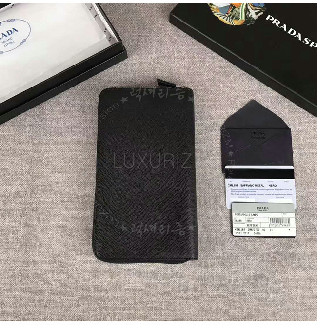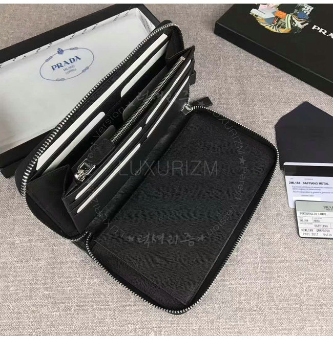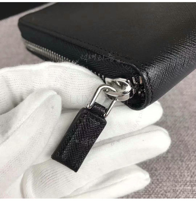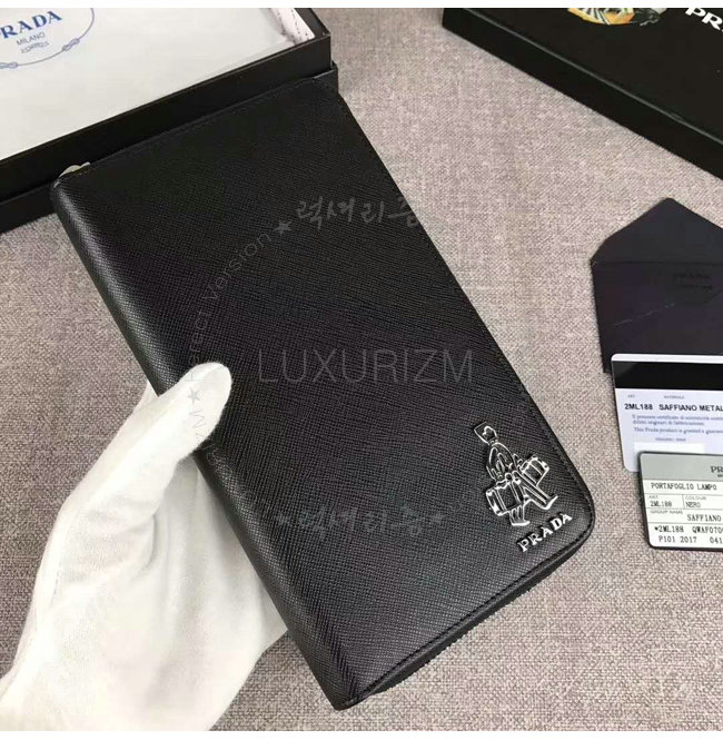 [스페셜오더]PRADA-2ML188 프라다 사피아노 가죽 포터 메탈 디테일 블랙 지퍼 지갑