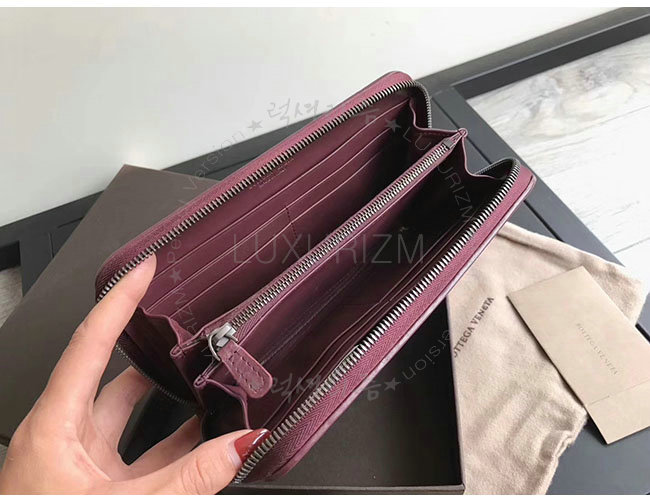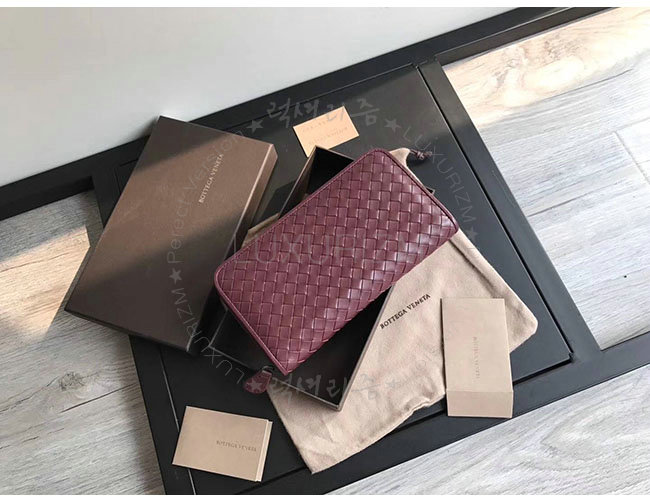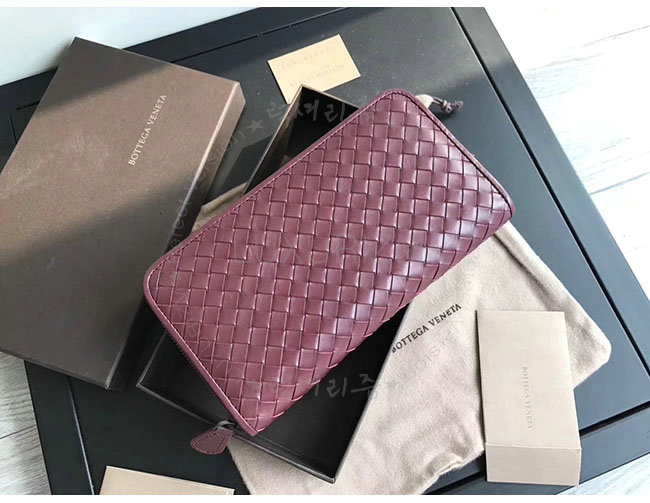 [스페셜오더]BOTTEGA VENETA-114076 보테가 베네타 버건디 인트레치아토 나파 짚 어라운드 지갑