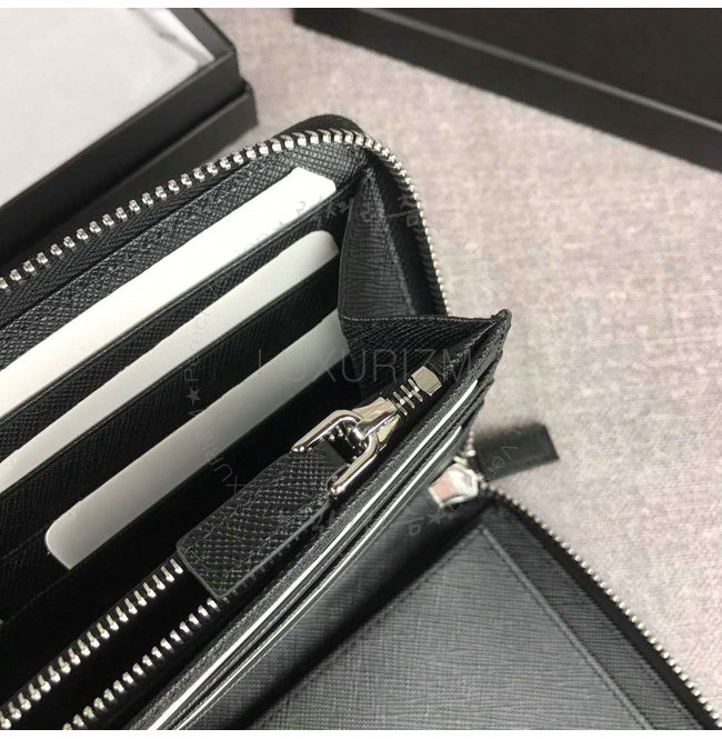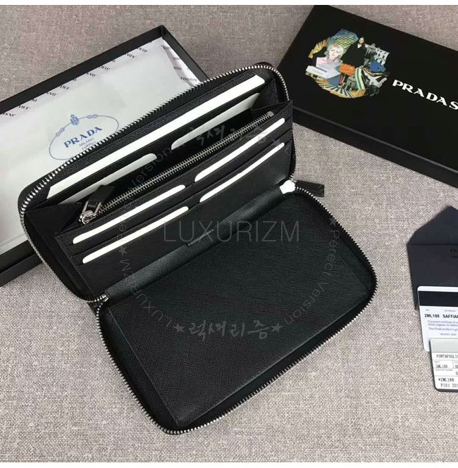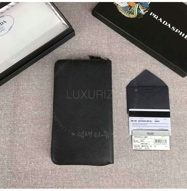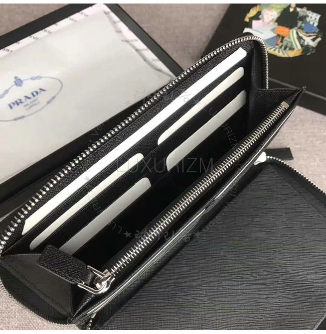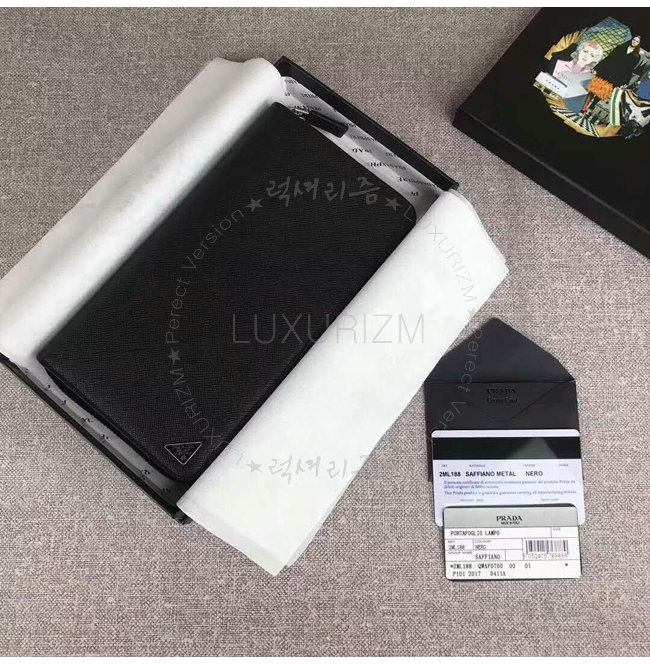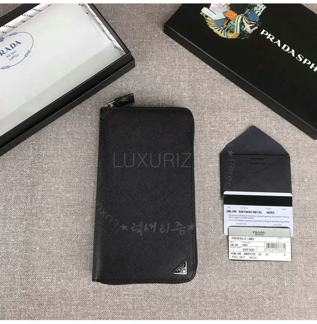 [스페셜오더]PRADA-2ML188 프라다 사피아노 가죽 트라이앵글 로고 블랙 지퍼 지갑