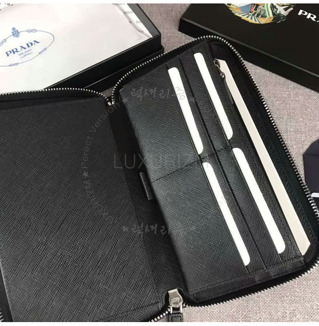 [스페셜오더]PRADA-2ML188 프라다 사피아노 가죽 포터 메탈 디테일 블랙 지퍼 지갑