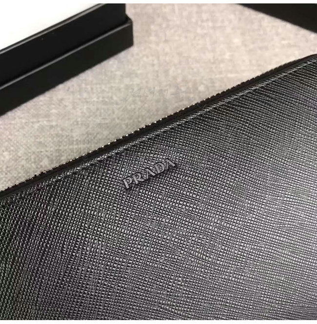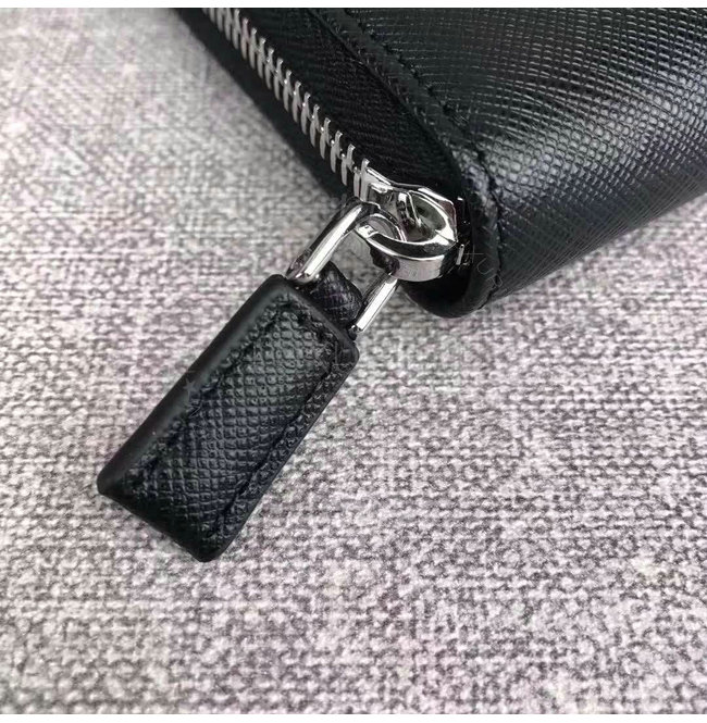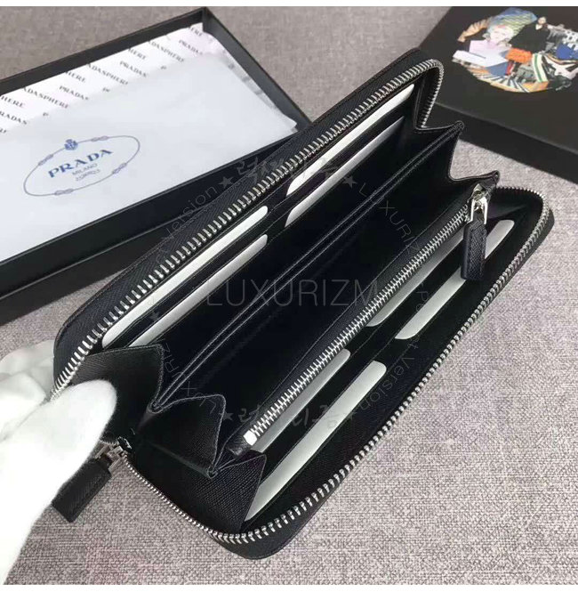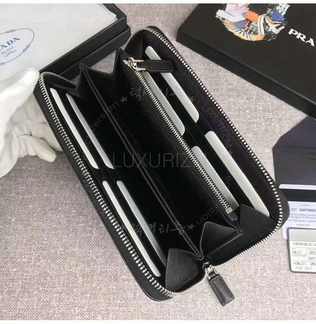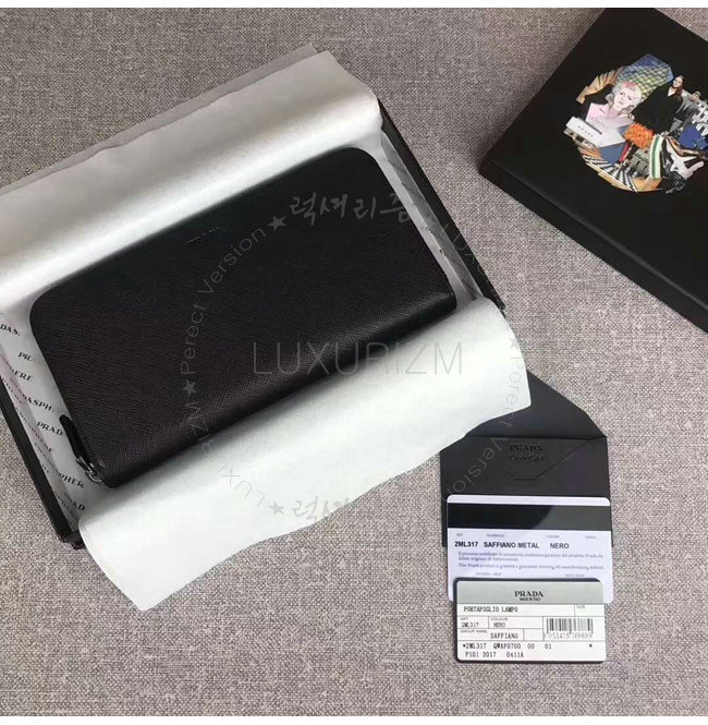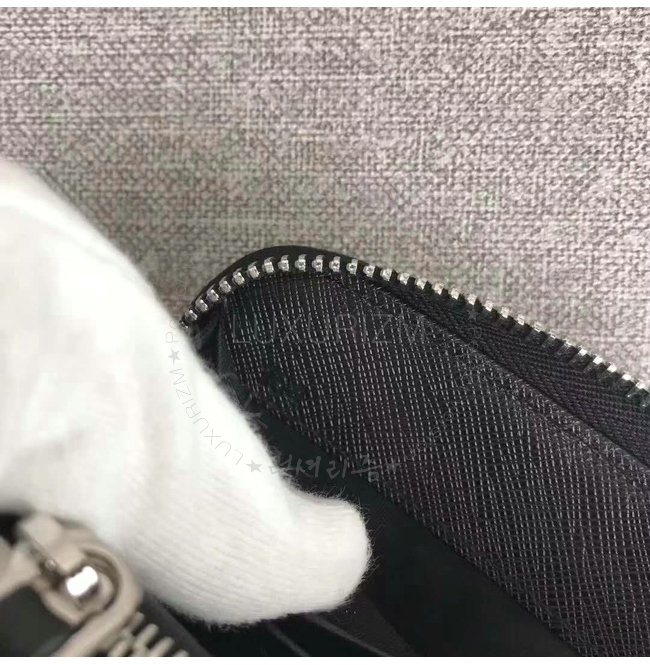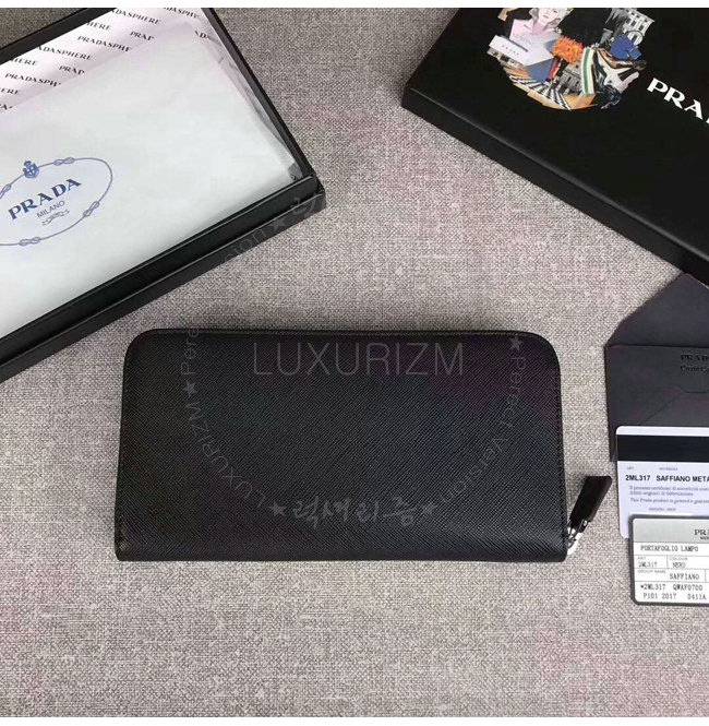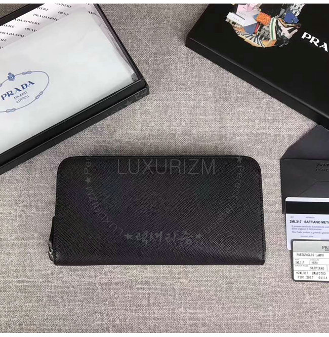 [스페셜오더]PRADA-2ML317 프라다 사피아노 가죽 히트 엠보싱 로고 블랙 지퍼 지갑