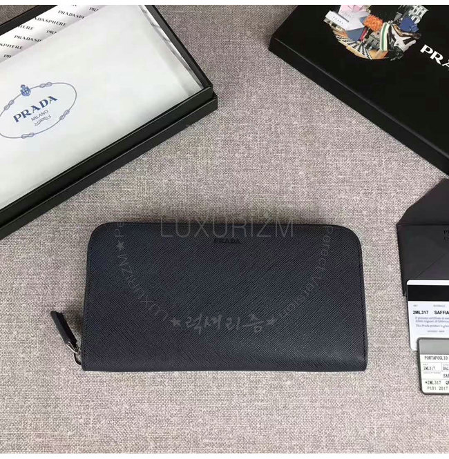 [스페셜오더]PRADA-2ML317 프라다 사피아노 가죽 히트 엠보싱 로고 블랙 지퍼 지갑