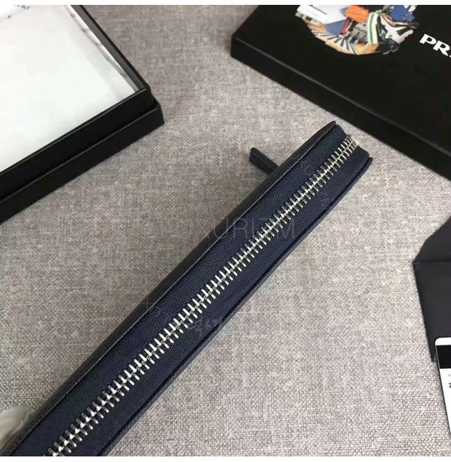 [스페셜오더]PRADA-2ML317 프라다 사피아노 가죽 히트 엠보싱 로고 발틱 블루 지퍼 지갑