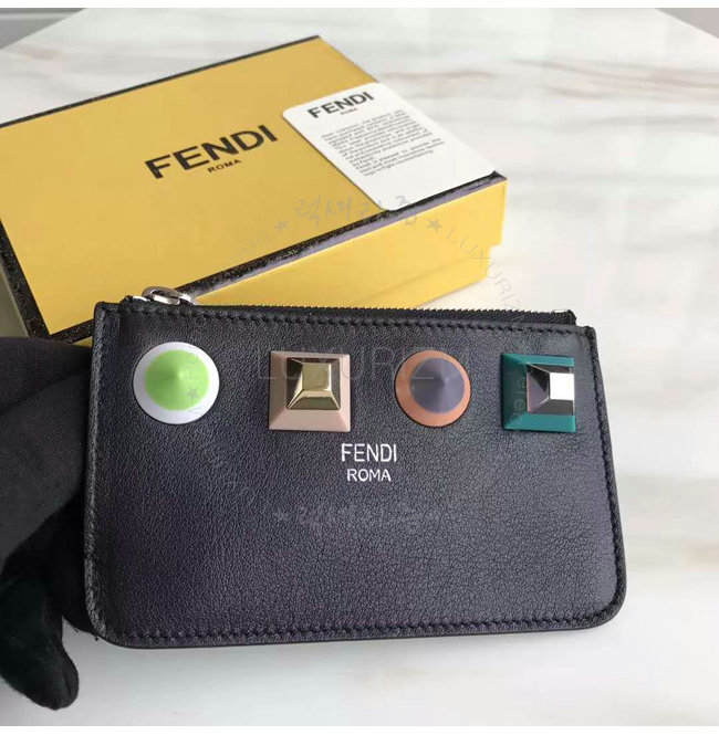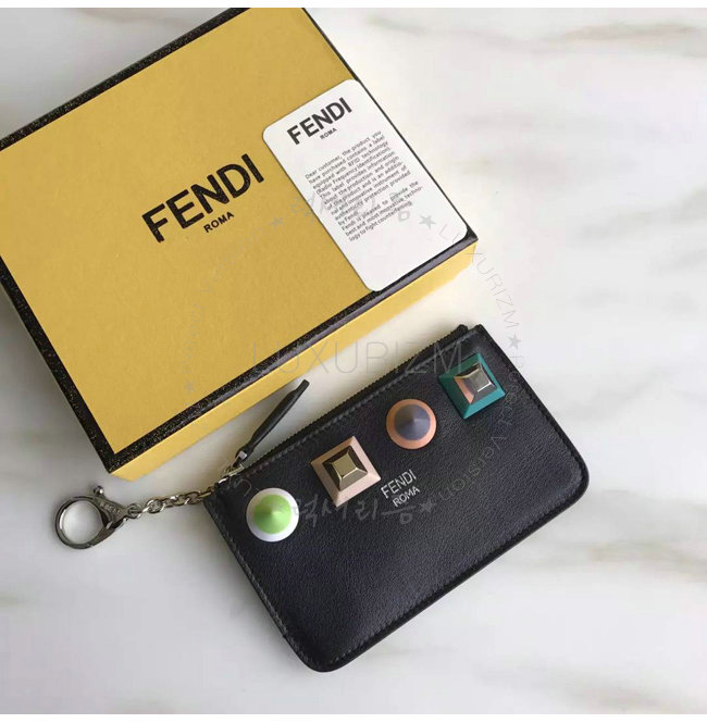 [스페셜오더]FENDI-8AP151 펜디 송아지 가죽 스터드 장식 블랙 키링 파우치