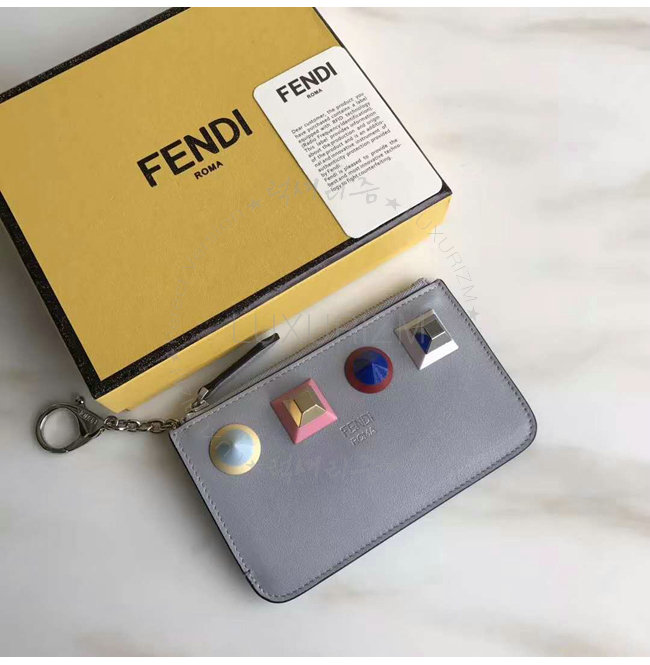 [스페셜오더]FENDI-8AP151 펜디 송아지 가죽 스터드 장식 그레이 키링 파우치