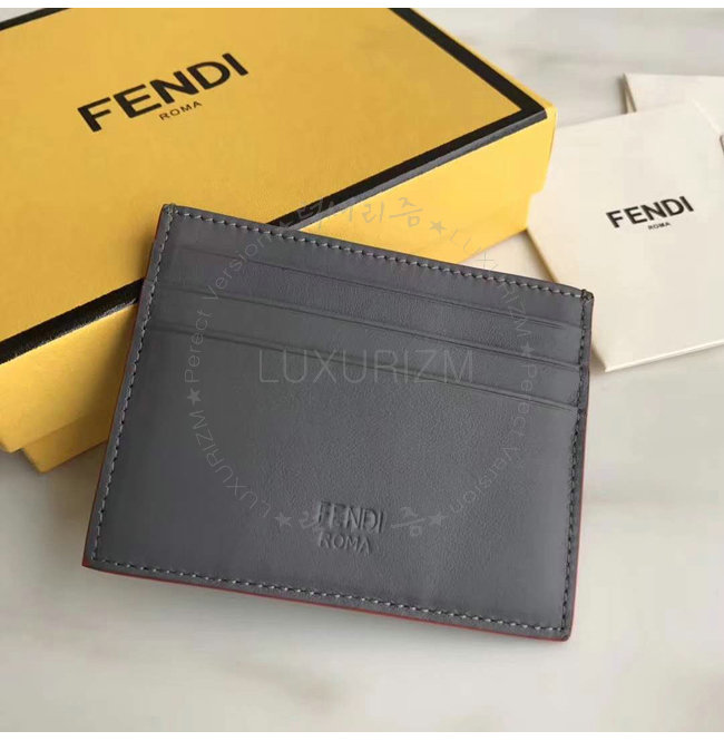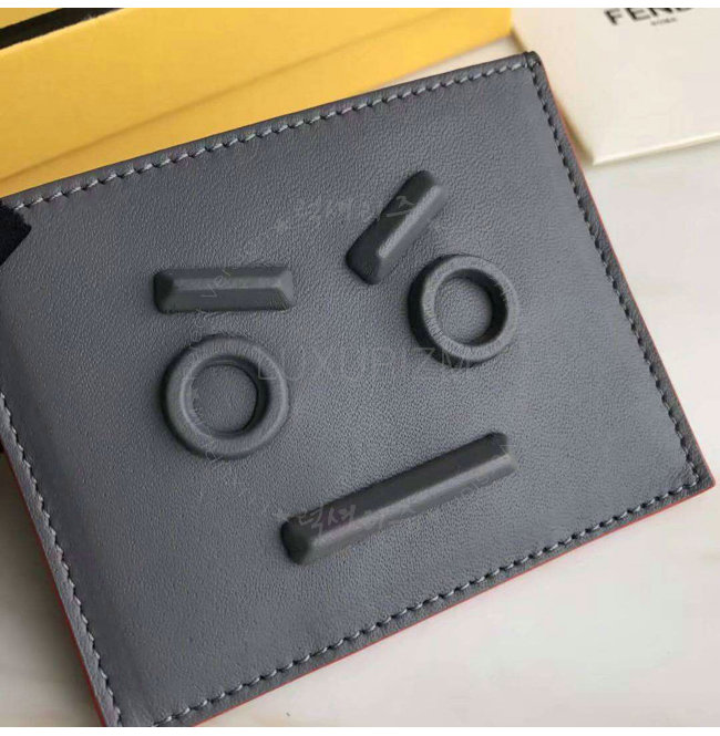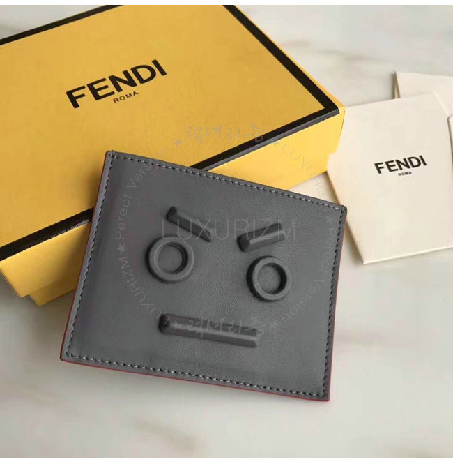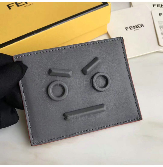 [스페셜오더]FENDI-7M0234 펜디 송아지 가죽 펜디 페이스 모티브 그레이 카드 홀더