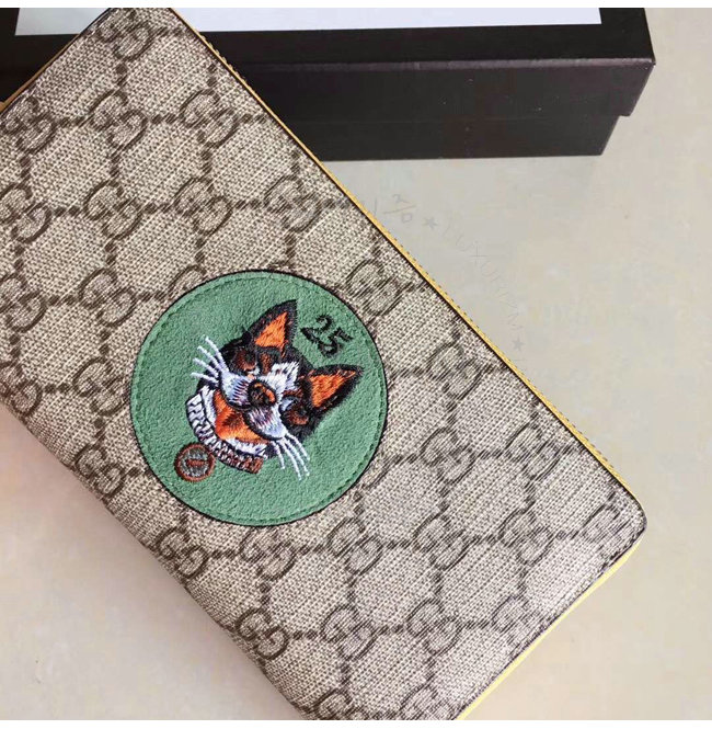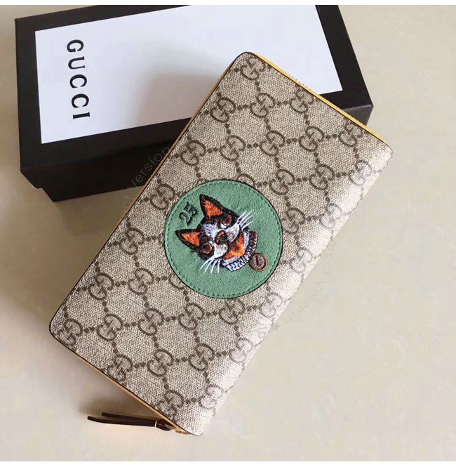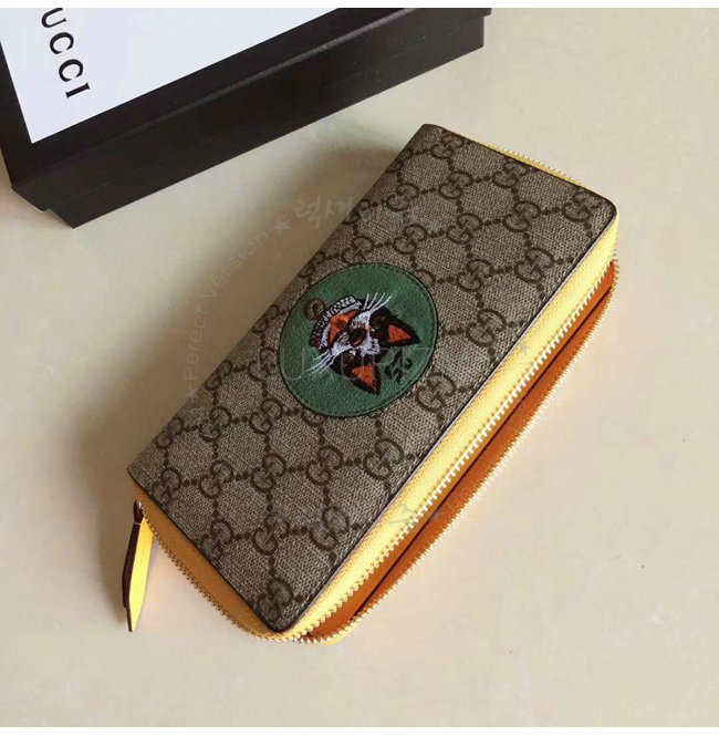 GUCCI-506279 9758 구찌 GG 수프림 캔버스 보스코 패치 장식 그린 지퍼 지갑