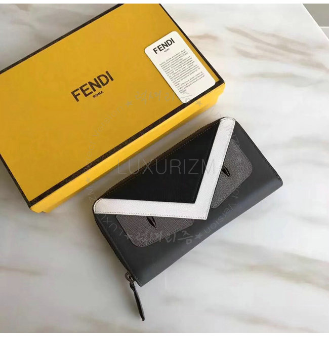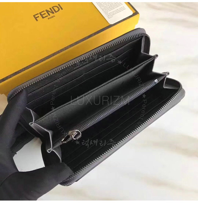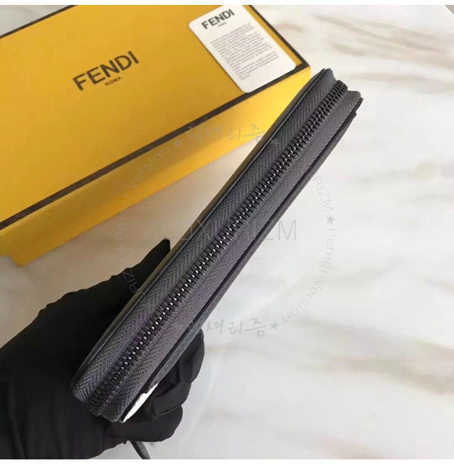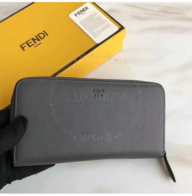 [스페셜오더]FENDI-7M02108 펜디 송아지 가죽 인서트 장식 그레이 지퍼 어라운드 지갑
