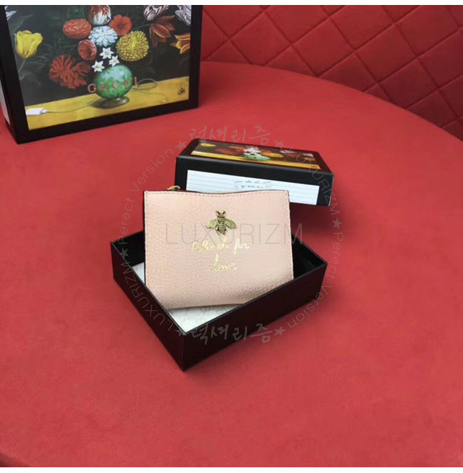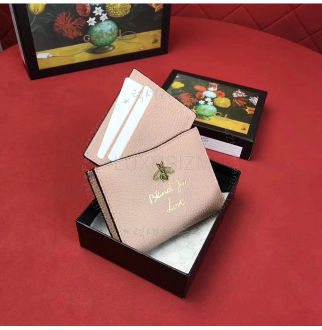 [스페셜오더]GUCCI-498094 5909 구찌 Animalier 라이트 핑크 가죽 카드 케이스